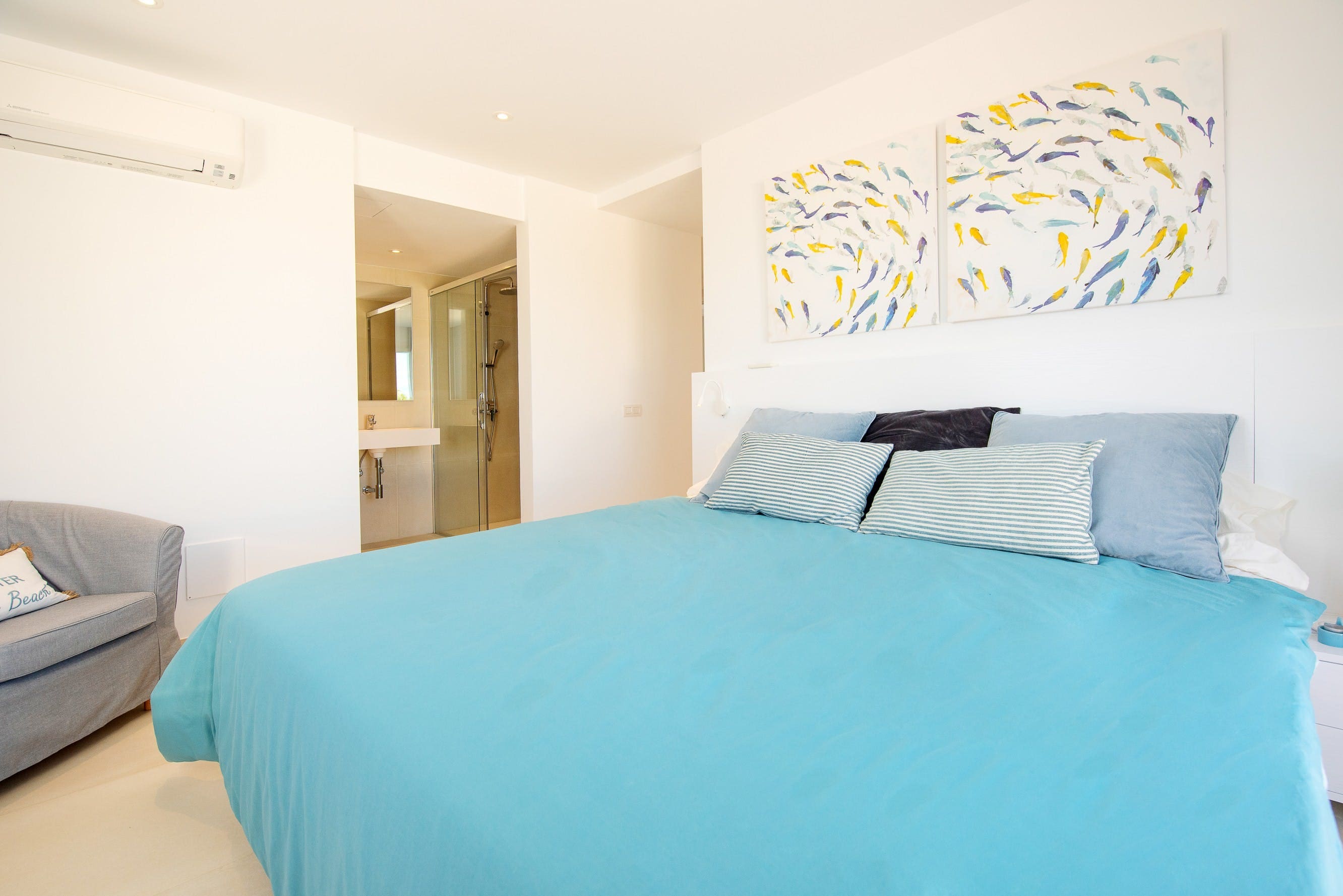 Accommodating up to six guests, the apartment features three bedrooms and four bathrooms. A cot is available upon request, and maid service is included. The ground floor is thoughtfully designed for those with reduced mobility. For more options, browse our luxury villa rentals in Spain.