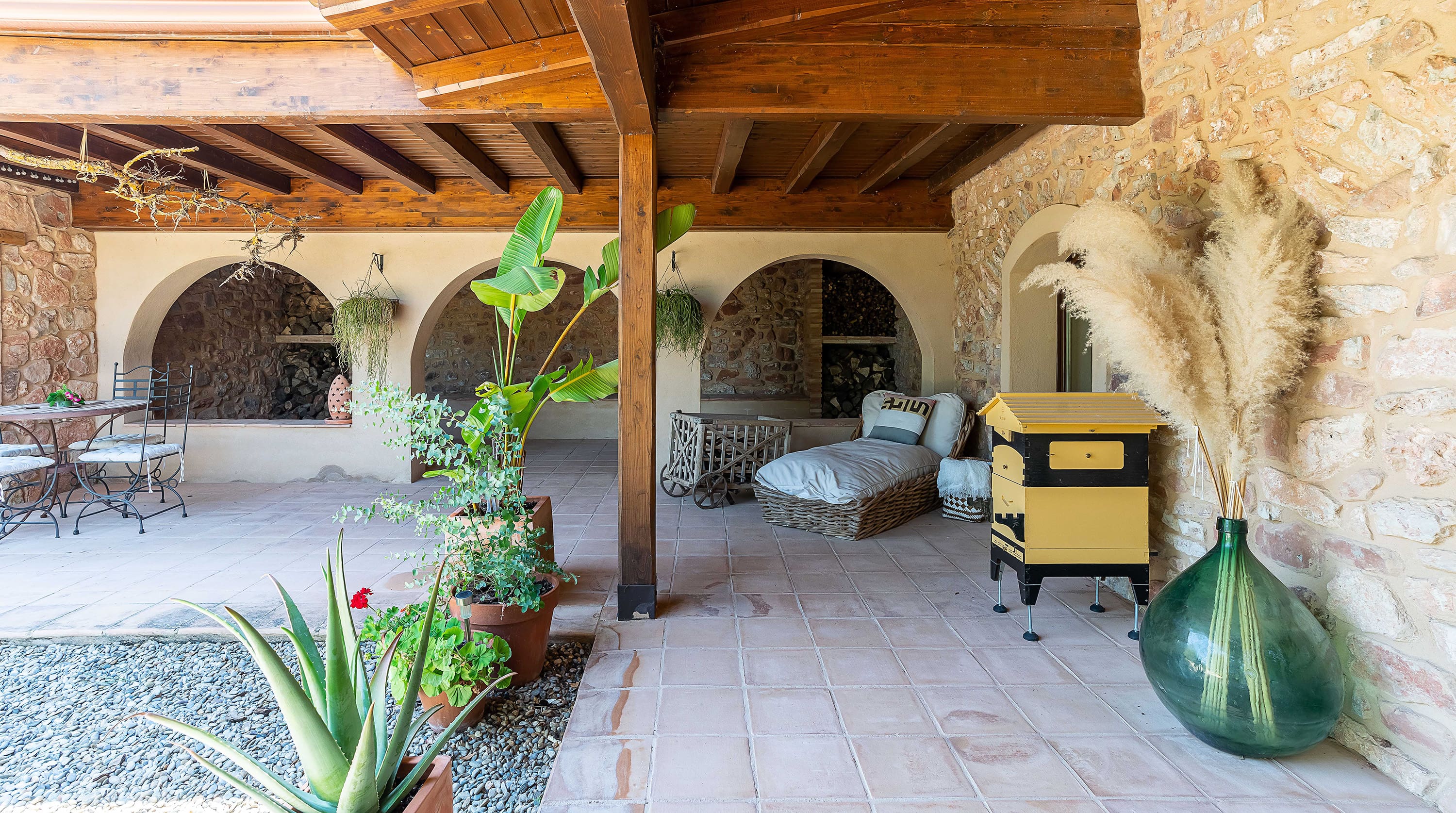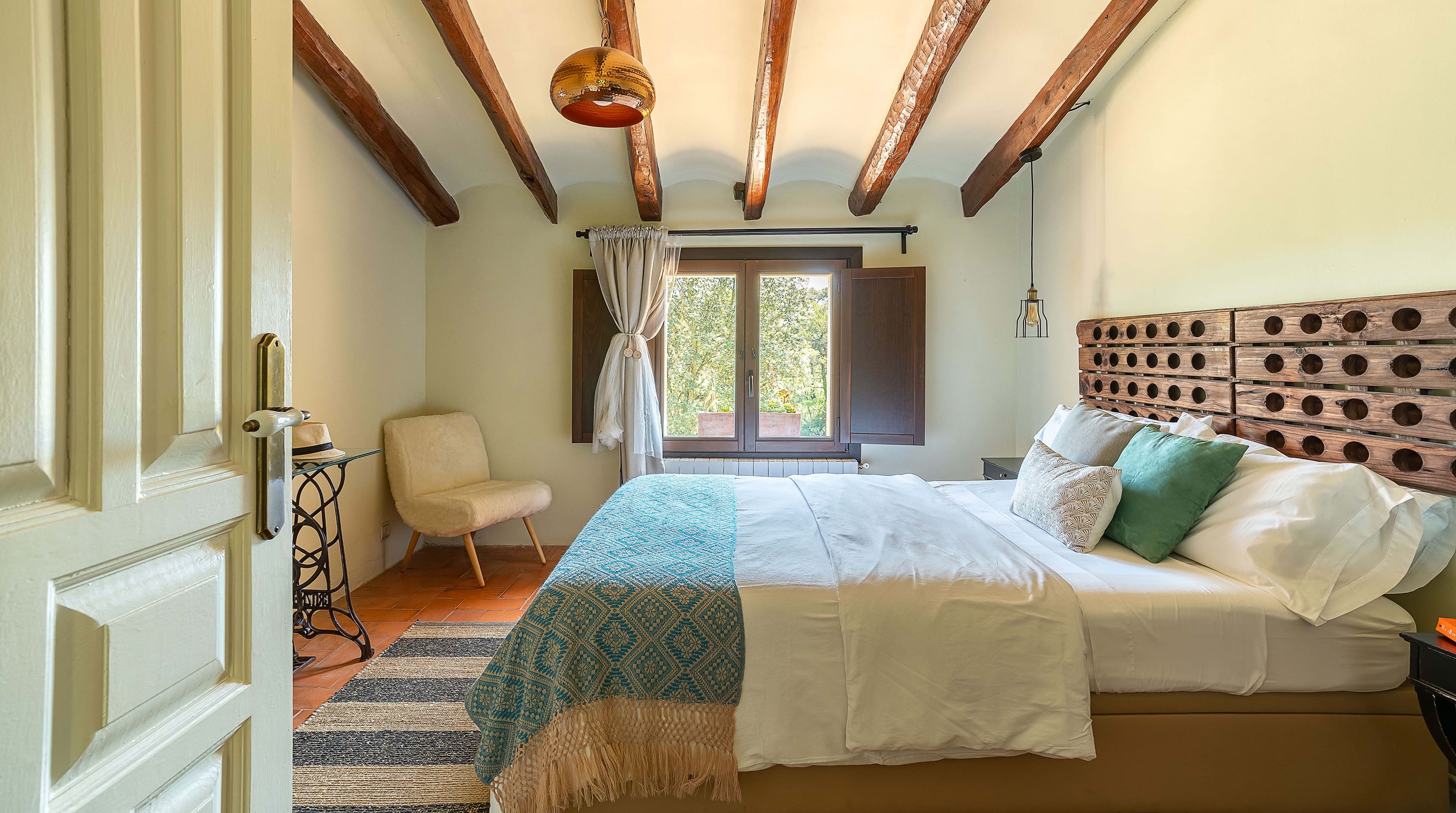The villa’s interior seamlessly blends traditional Catalonian charm with modern elegance. Exposed brickwork, wooden beams, and terracotta tiles create a rustic yet refined atmosphere. The villa features four stylish bedrooms, each designed for comfort and relaxation, and two sleek bathrooms. The contemporary kitchen is well-equipped, inviting culinary explorations, while the open-plan living spaces ensure a cozy and welcoming environment.