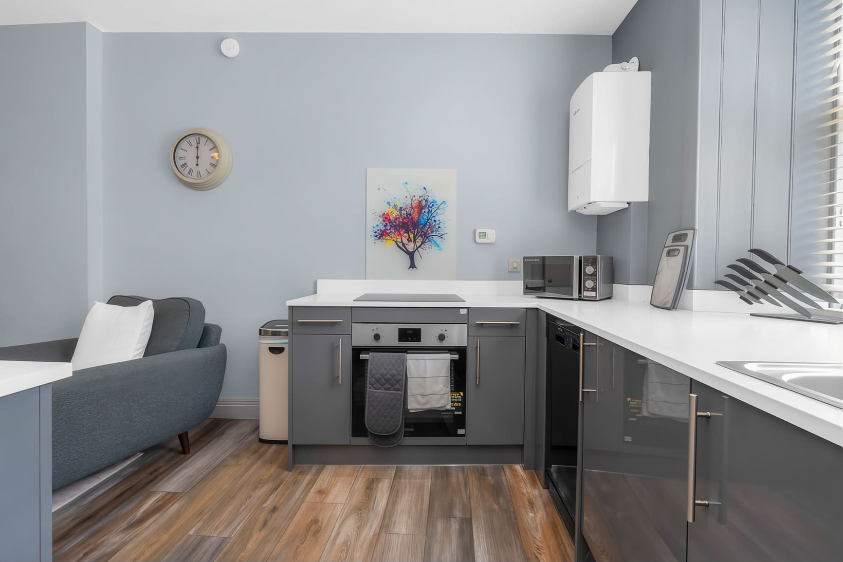 Step inside and be greeted by a blend of historic and contemporary design. The flat features period details like exposed brickwork and tall sash windows, offering a nod to the building’s rich past. The bright and airy living room is perfect for relaxation, while the well-equipped kitchen makes it easy to enjoy evenings in. Each of the two bedrooms offers a peaceful retreat, with comfortable beds ensuring a restful night’s sleep. Modern bathrooms complete the space, providing every convenience for guests.
