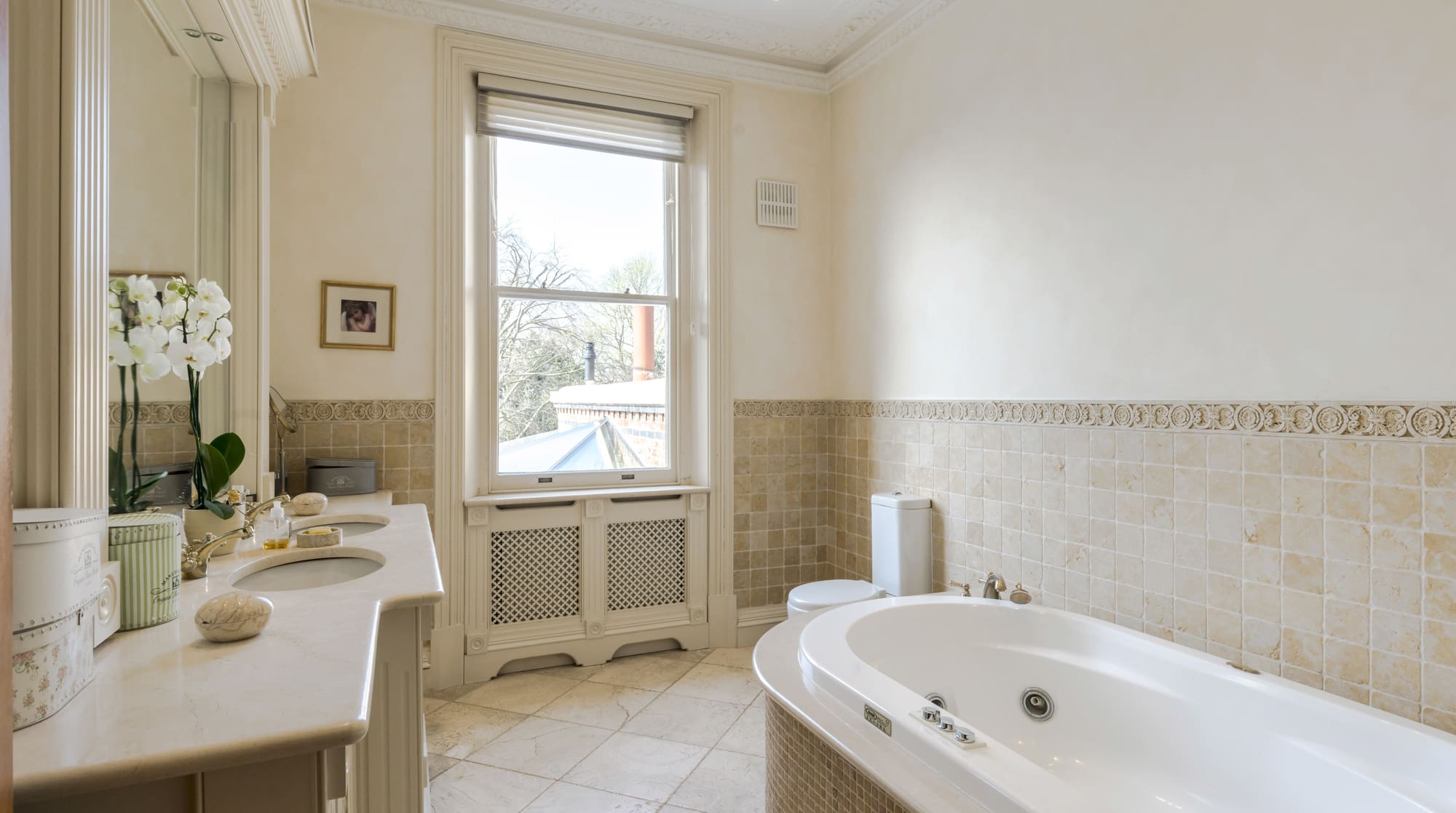 Set on half an acre of lush gardens, the outdoor spaces invite you to unwind and enjoy nature’s tranquility. Children will delight in the play equipment and trampoline, though supervision is advised. Dining al fresco becomes a pleasure with ample seating and picturesque surroundings. The peaceful setting offers a refreshing contrast to the bustling city, yet Central London remains easily accessible.