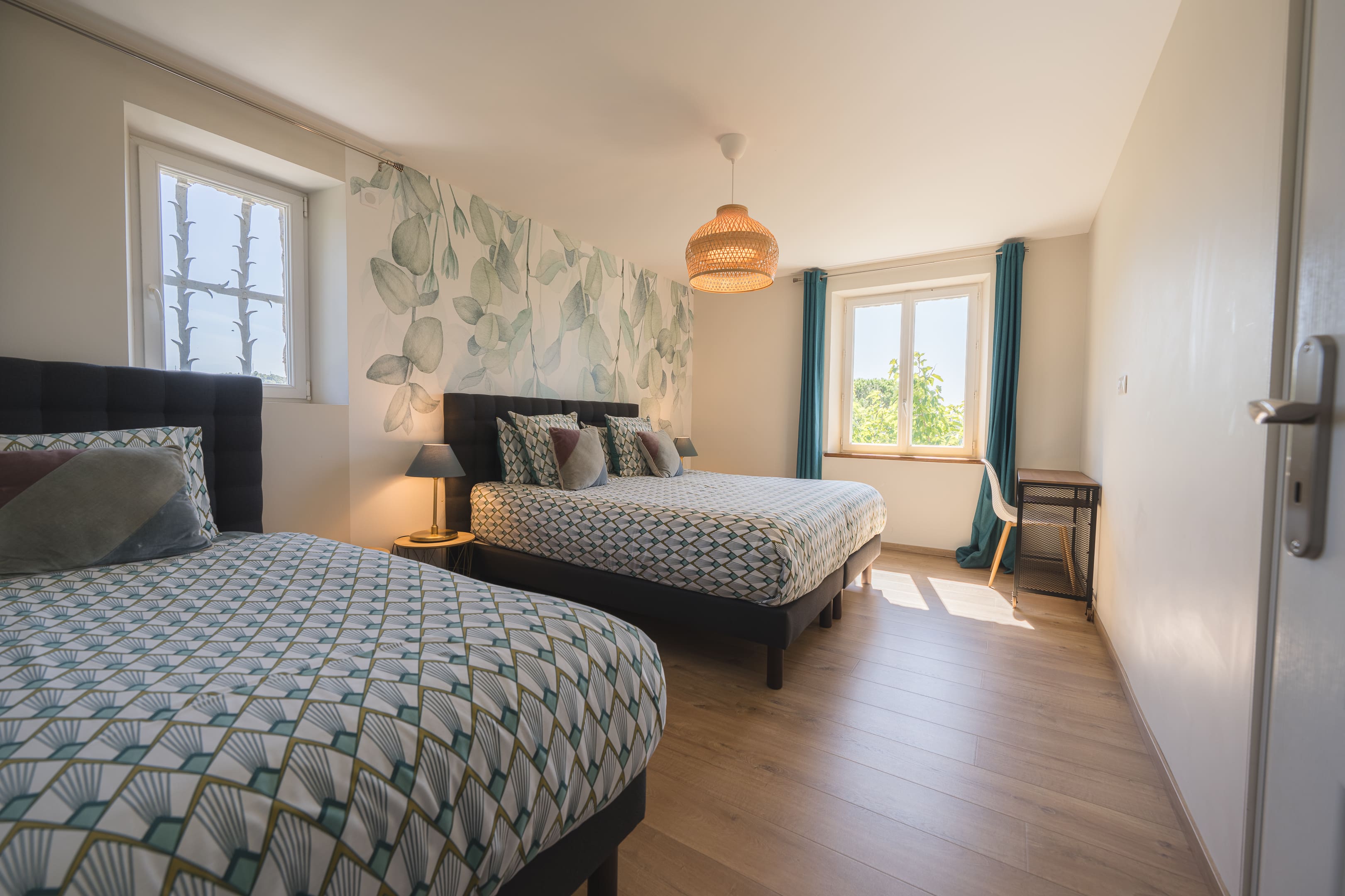 The interior of this chateau exudes sophistication and style, reflecting the rich heritage of the region. With five spacious bedrooms, each with its own en-suite bathroom, the chateau comfortably accommodates up to 12 guests. The versatile bedroom arrangements, featuring king-sized beds that can be converted into singles, make it ideal for families and groups. The living areas are bright and airy, providing a perfect space for relaxation or entertaining, while the fully equipped kitchen invites culinary adventures.