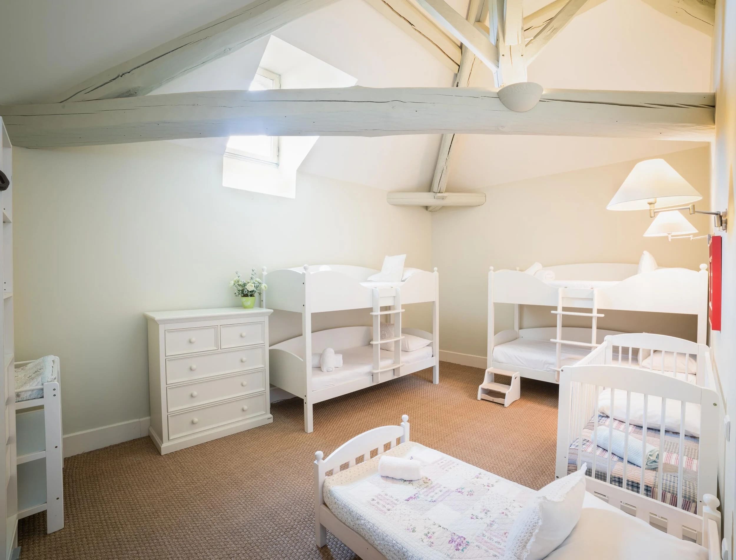 Step inside to find an exquisite blend of traditional charm and modern amenities. The spacious interiors boast a refined style, with plush furnishings and tastefully decorated common areas. The bedrooms, spread across two floors, offer privacy and comfort; some feature unique tower bathrooms. The eighth bedroom is a family haven, complete with a double bed, bunk beds, and a toddler bed. A well-equipped kitchen and elegant dining areas make meal times a pleasure.