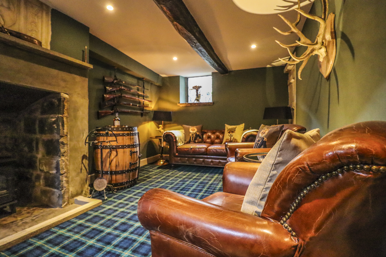 As you approach Scout Castle, its mellow Derbyshire sandstone walls rise majestically, hinting at the opulence that lies within. Once inside, you are greeted by luxurious living spaces adorned with intricate stained-glass coats of arms, which bathe the rooms in a soft, ethereal light. The air is infused with a sense of tranquillity and warmth, inviting you to unwind and indulge in the comforts of this magnificent castle.
