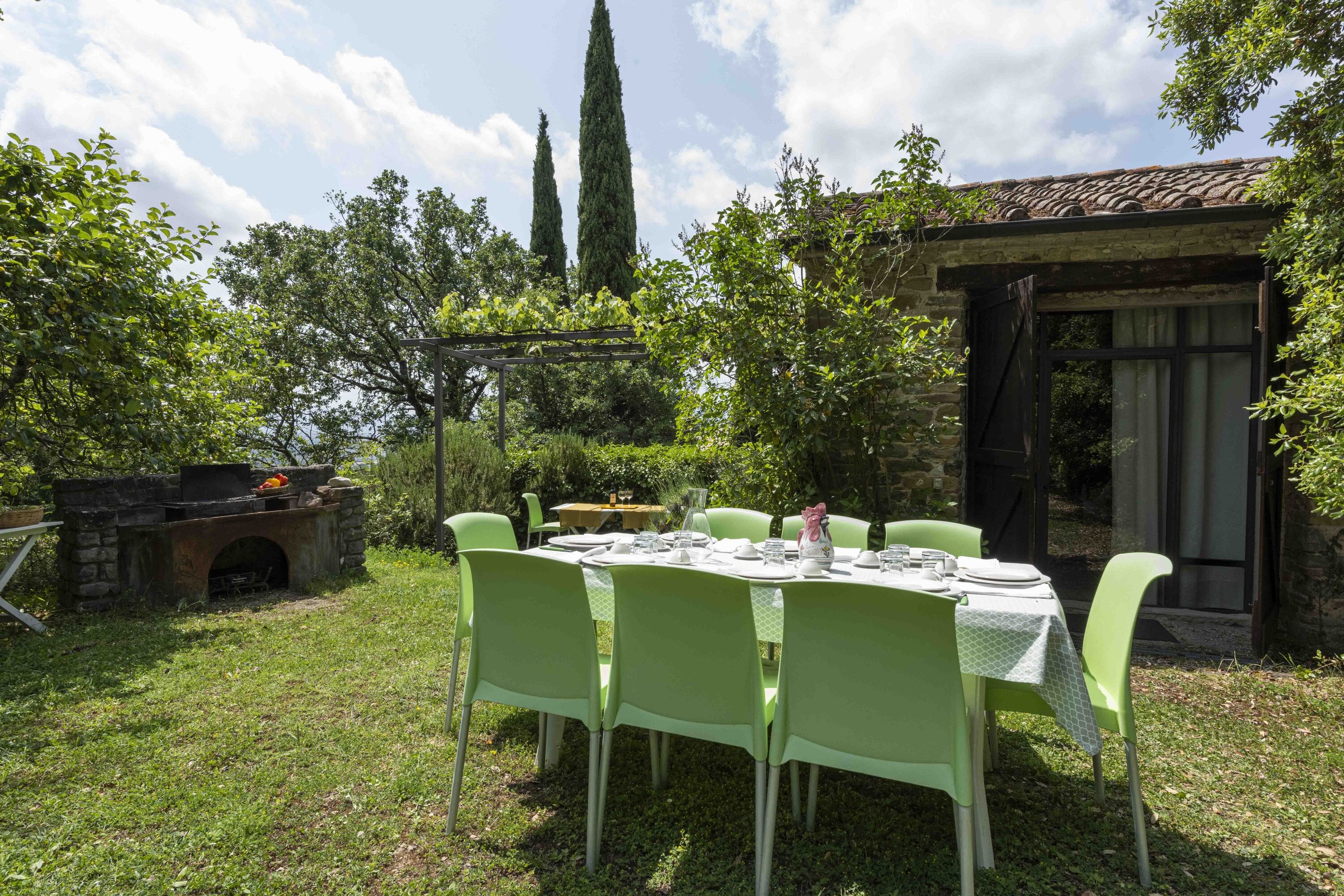The villa’s outdoor spaces are equally captivating, offering sweeping views of the Tuscan landscape. The unfenced swimming pool invites you to take a refreshing dip, while the surrounding terraces provide perfect spots for sunbathing or enjoying a leisurely meal prepared on the BBQ. The expansive gardens are dotted with olive groves and cypress trees, creating a serene environment for relaxation and exploration.