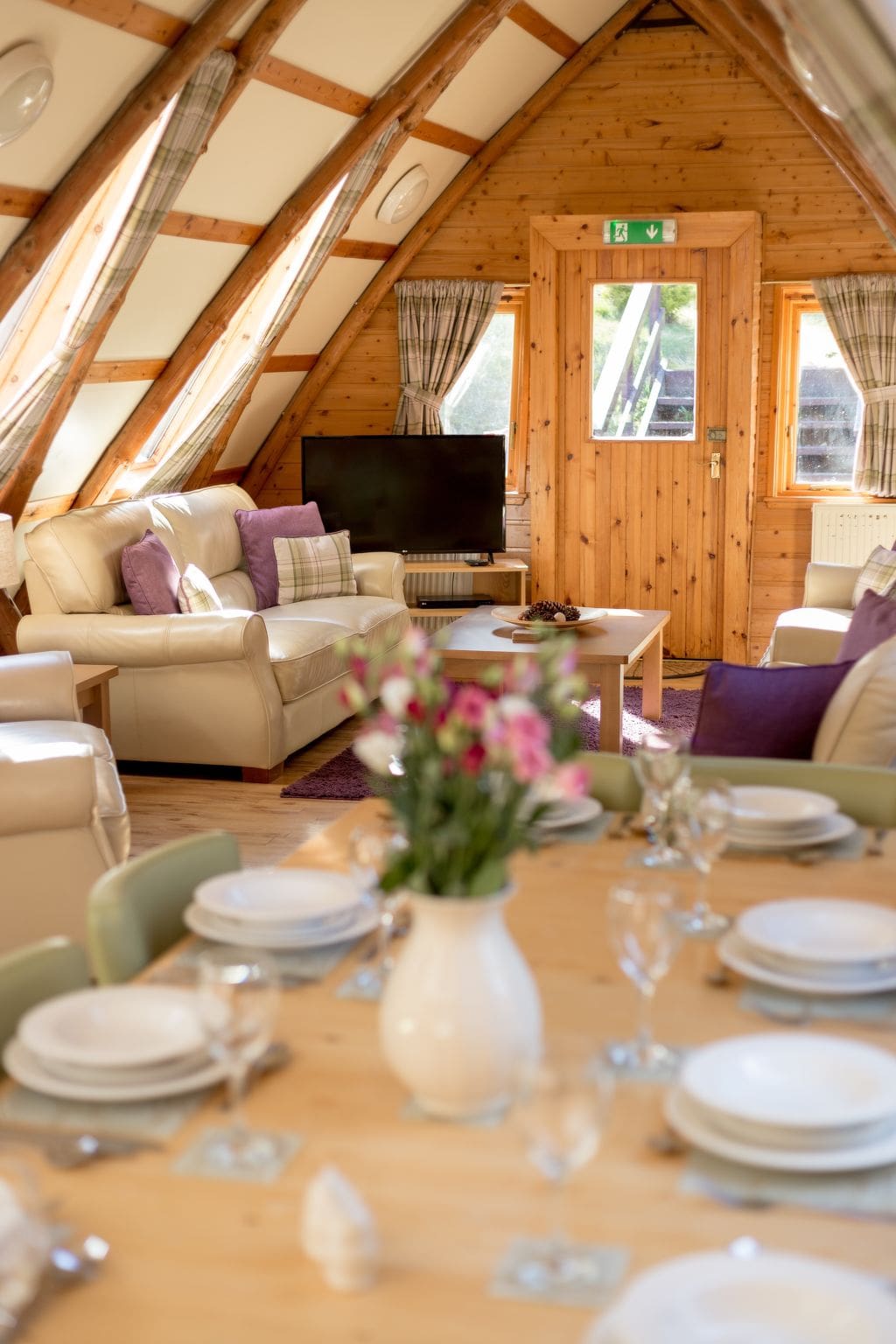 The villa’s extensive gardens provide a perfect outdoor sanctuary, surrounded by mature trees and rolling meadows that epitomize the Scottish countryside. The private patio area includes comfortable outdoor furniture where guests can enjoy morning coffee while listening to birdsong, or gather for evening drinks as the sun sets over the hills. The unfenced garden allows for easy exploration, while the peaceful location ensures complete privacy and tranquility.