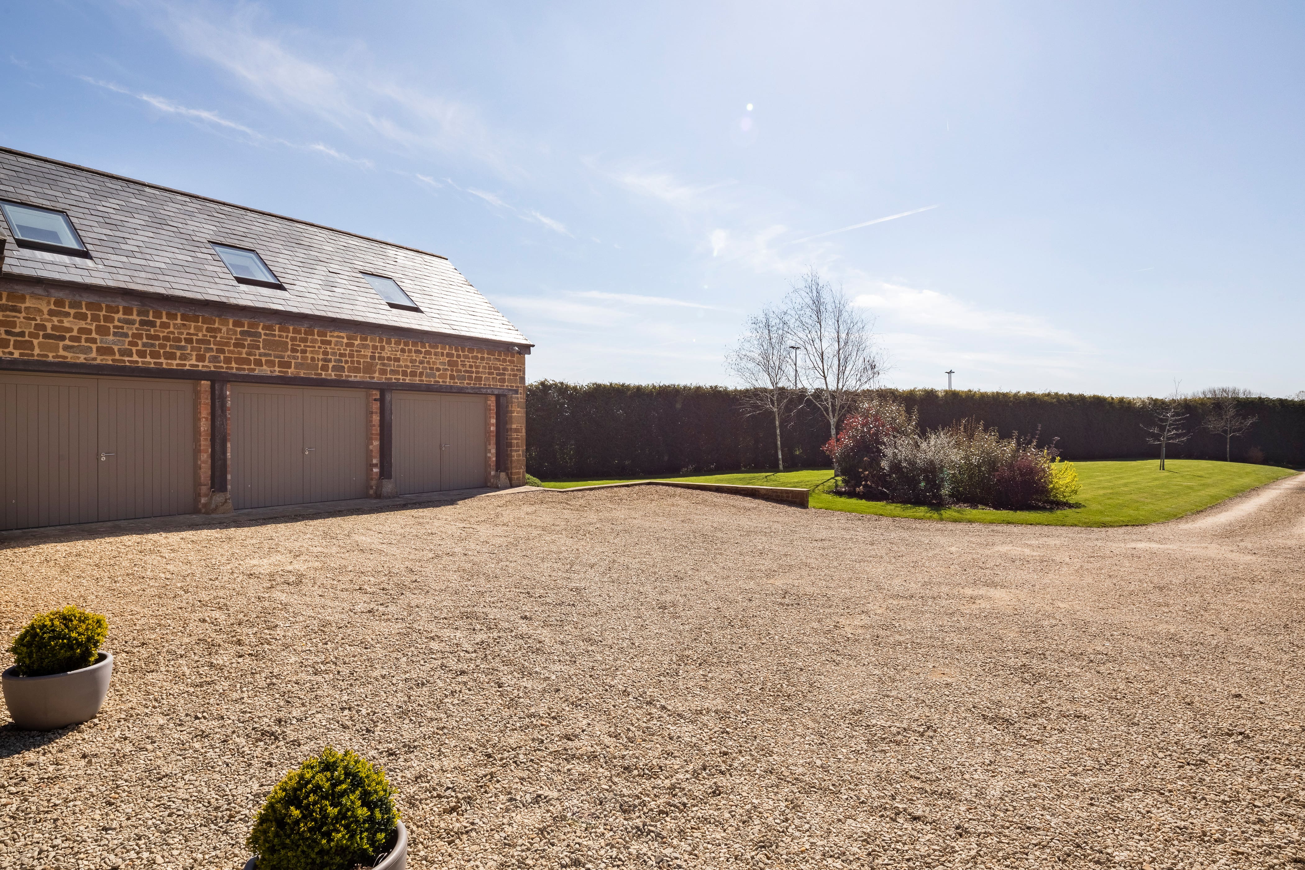 The property is surrounded by an expansive wrap-around garden offering unspoilt countryside views. An outdoor heated swimming pool promises leisurely afternoons, while private parking ensures convenience. The peaceful setting is complemented by the vibrant flora unique to the Cotswolds, making it a perfect escape from the hustle and bustle of city life.