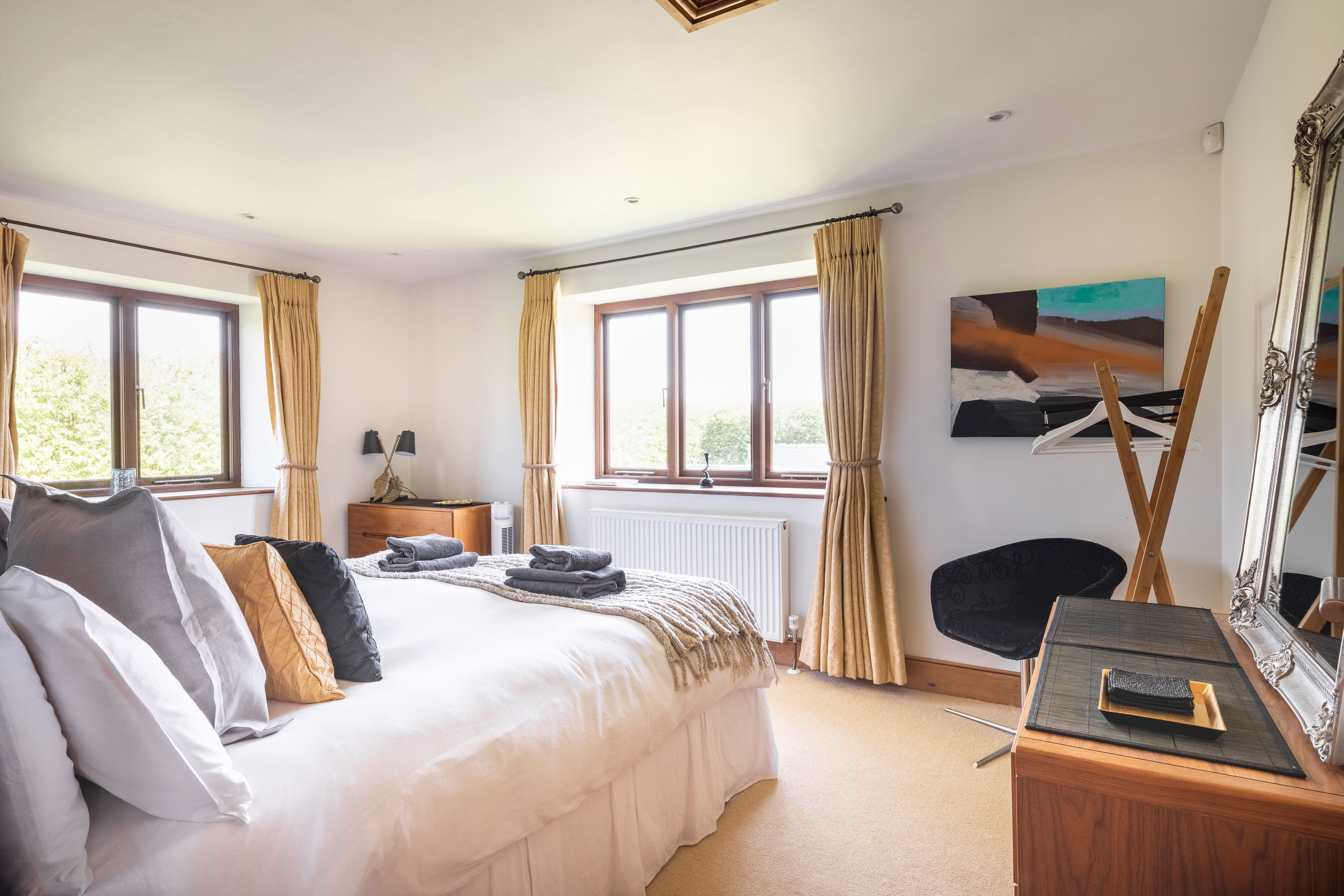 Step inside to find a harmonious blend of traditional charm and modern sophistication. The house features five beautifully appointed bedrooms, each with its own en-suite bathroom, ensuring comfort and privacy for all guests. The fifth bedroom offers flexibility with its super-king-size bed convertible into twin beds upon request. The common areas include two inviting reception rooms and a dining room, perfect for entertaining or unwinding by the wood-burning fire. A self-contained annexe houses a games room, an office, and a kitchenette, making it suitable for remote working as well.