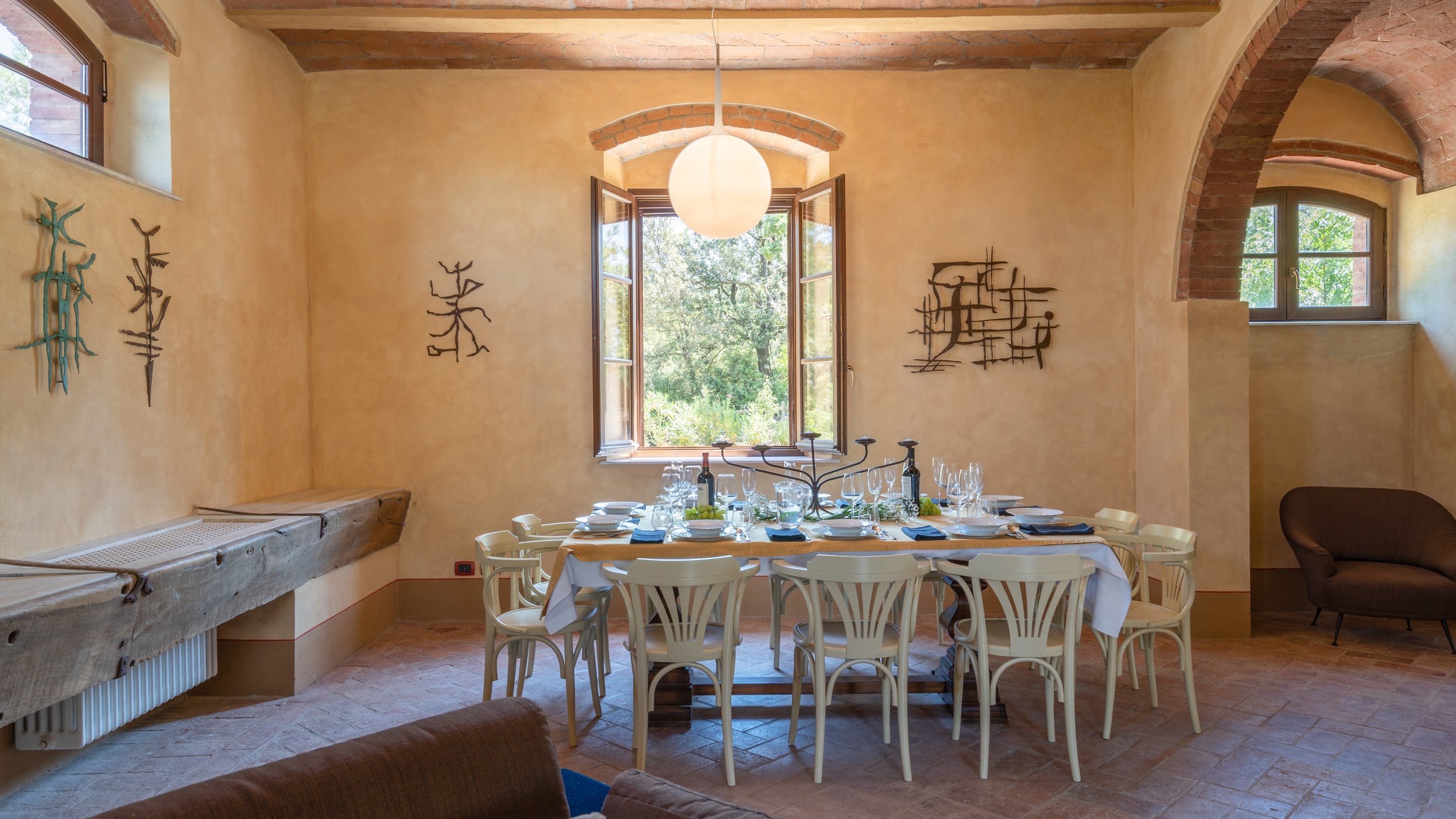 The outdoor areas are a testament to the stunning Tuscan landscape. Dive into the refreshing swimming pool, available from late April to early October, or unwind in the hot tub as you take in the panoramic views of rolling hills. The expansive terrace is perfect for al fresco dining, allowing you to savor the region’s exquisite cuisine under the open sky.