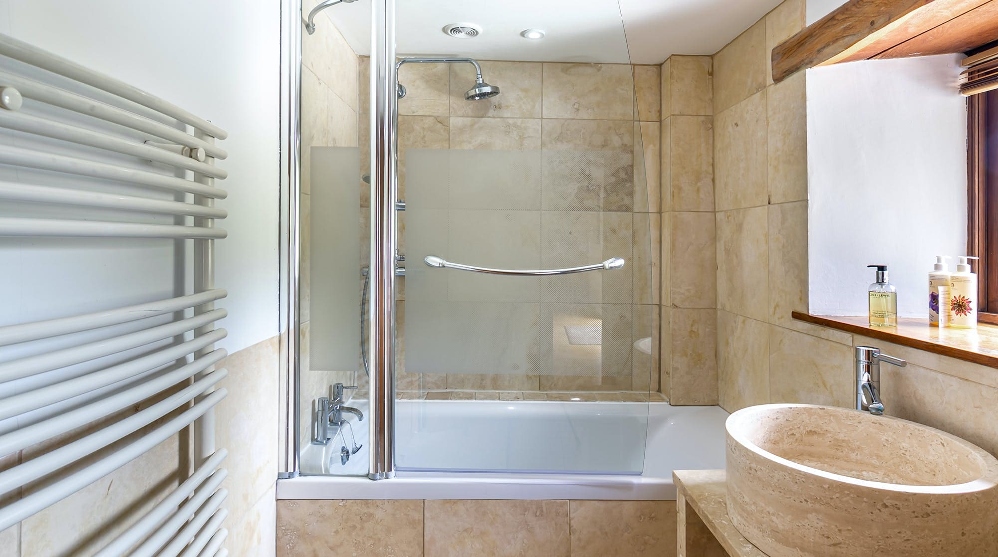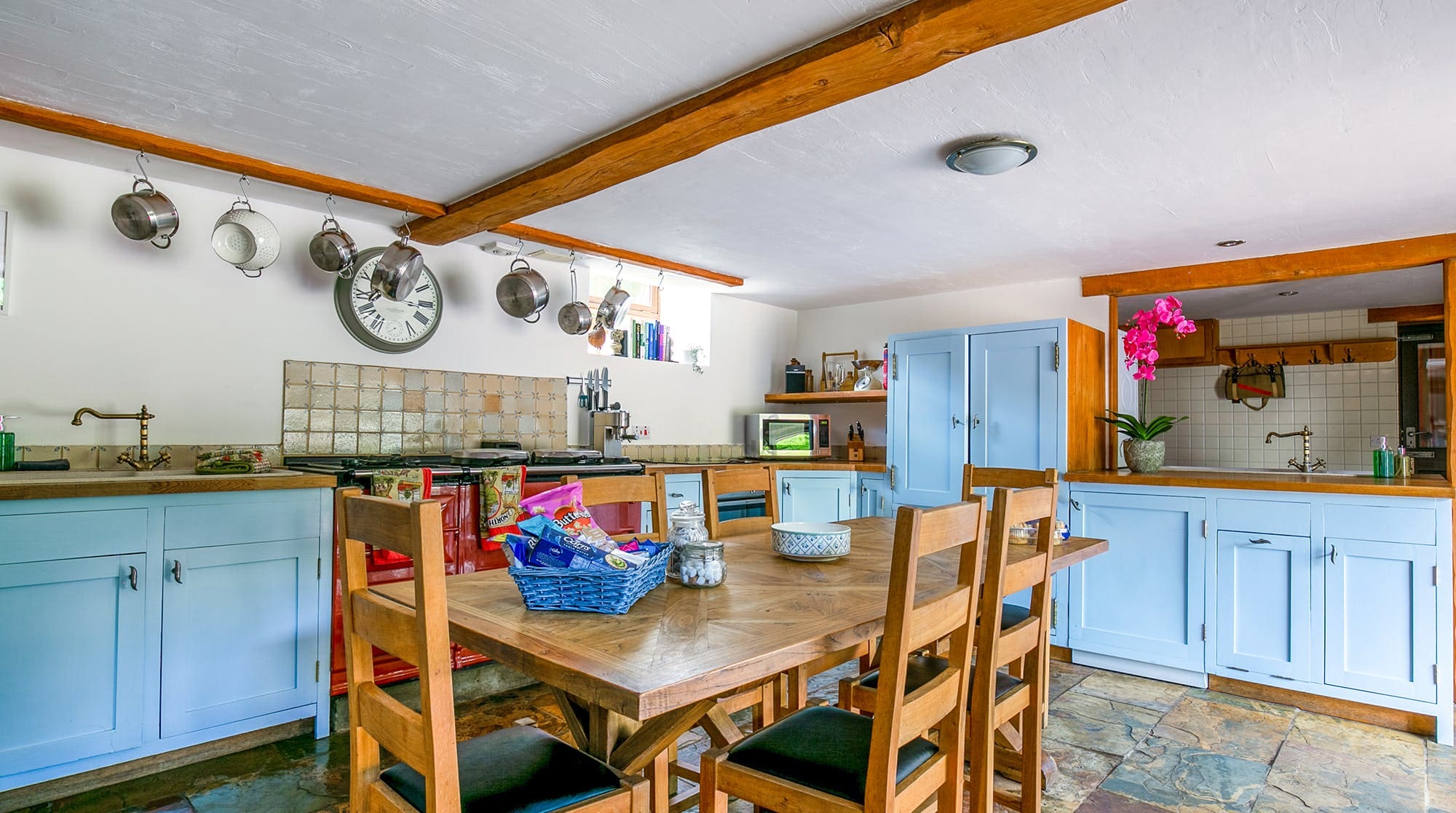 Step inside to discover a blend of modern comfort and traditional charm. The spacious living area features plush seating and a cozy atmosphere, ideal for unwinding after a day of exploration. The farmhouse-style kitchen is fully equipped, including an induction hob and a traditional Aga, perfect for preparing hearty meals. With five bedrooms, including a unique mezzanine level twin room and a versatile super-king room, this apartment comfortably accommodates up to ten guests.