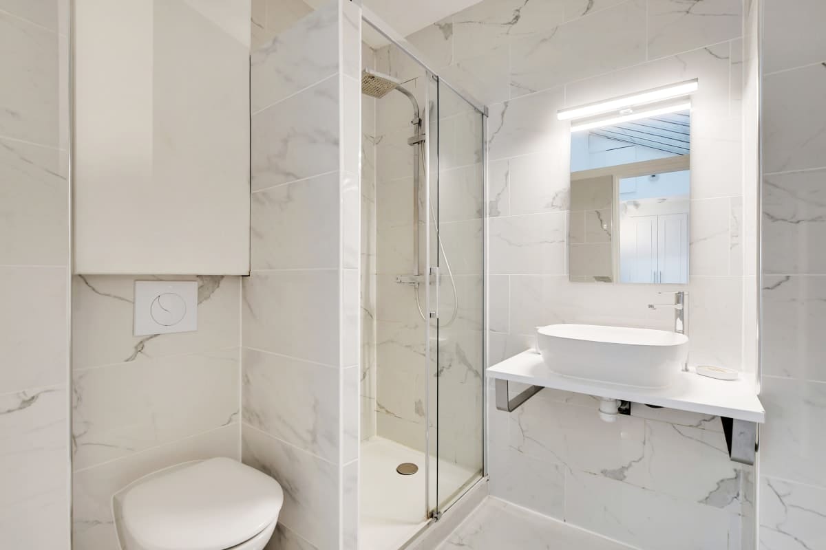 Step into a world of sophistication as you enter this beautifully designed apartment. The interiors blend classic Parisian style with contemporary touches, featuring high ceilings, large windows, and tastefully selected furnishings. Each bedroom boasts its own en-suite bathroom, ensuring privacy and convenience for all guests. The modern kitchen is fully equipped, while the living area provides a cozy space for relaxation, with a sofa bed accommodating an additional guest.