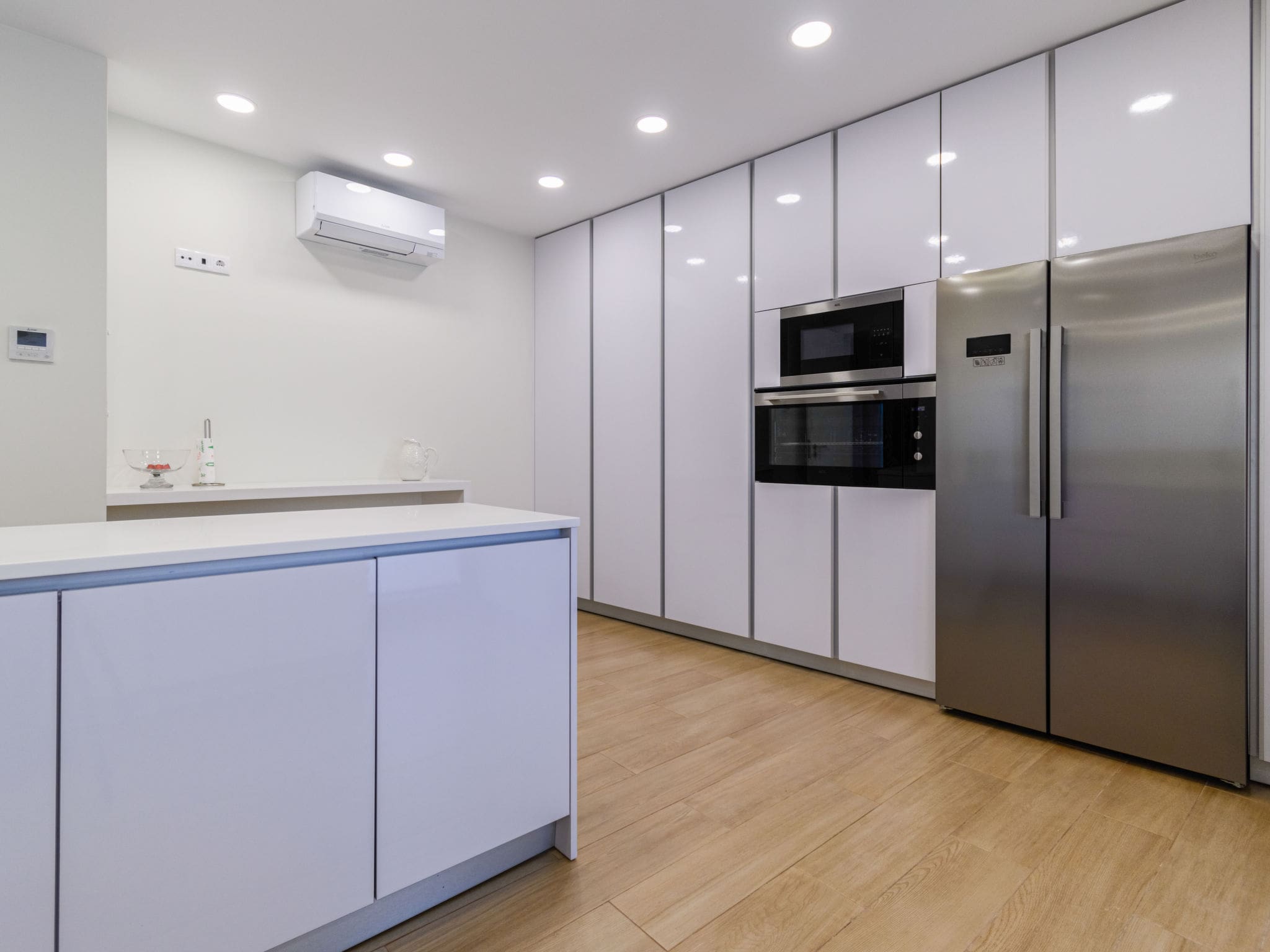Fully renovated in 2021, this spacious 106-square-meter property unfolds across two thoughtfully designed levels. The heart of the home centers around a magnificent living and dining area featuring panoramic windows that frame the surrounding countryside. A stylish bar area complements the formal dining space, while state-of-the-art air conditioning and heating systems ensure year-round comfort. The modern kitchen showcases premium appliances including a dishwasher, ceramic glass hob, microwave, and professional-grade Nespresso coffee machine. Five elegantly appointed bedrooms each feature private bathrooms, with the master suite offering luxurious amenities including a bidet and premium fixtures. Every room benefits from individual climate control and contemporary furnishings that reflect the property’s sophisticated renovation.