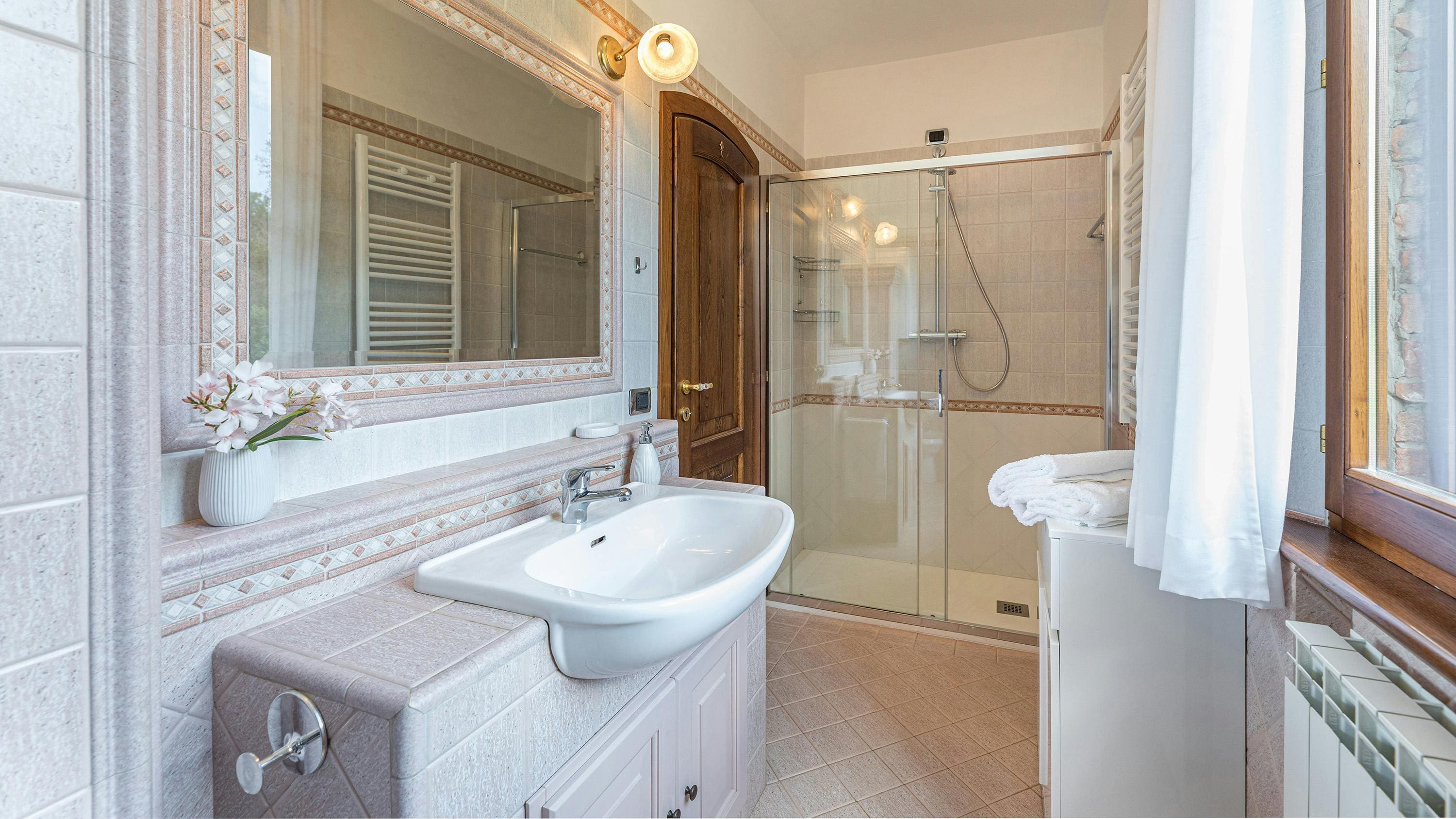 This villa comfortably accommodates up to ten guests with its five bedrooms and four bathrooms. A ground floor bedroom and bathroom cater to those with reduced mobility. Free parking is available, making it convenient for guests with rental cars. Pets are welcome, adding to the home’s family-friendly appeal. For more options, browse our luxury villa rentals in Italy.