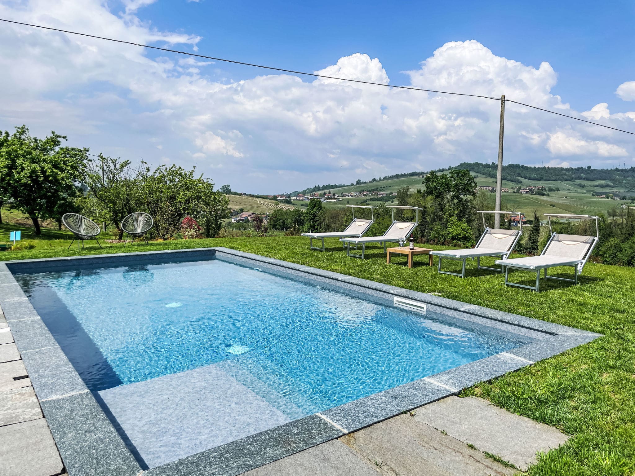 The property’s elevated position provides unobstructed views across Piedmont’s legendary landscape, where vine-covered hills stretch toward distant mountains. An outdoor shower near the pool adds convenience, while the portable barbecue invites memorable al fresco dining experiences under starlit skies.