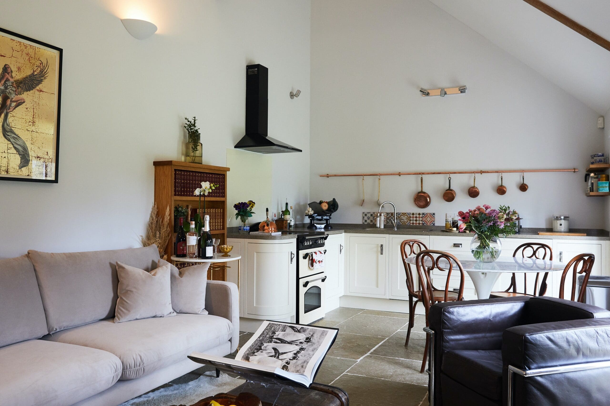 Good things come to those who wait. Four hundred years ago, this cottage was a barn, but it has recently been converted to become the picturesque dwelling you’ll find today. Tucked away in three acres of idyllic land, it’s surrounded by wildflower meadows, rolling green hills and beautifully landscaped gardens in the heart of Devon’s glorious countryside. If you’re looking for somewhere totally private yet utterly indulgent, this is it. The interior has some grand original features (wooden beams, vaulted ceilings and a cosy wood-burner with an abundance of logs) as well as thoughtful, modern design touches (bold geometric-print cushions, sage green walls, upcycled furniture and industrial-style wall lamps). We don’t say this lightly, but a perfect night’s sleep is all but guaranteed thanks to the exceptional quality bedding (which has the same thread count as the sheets used at The Dorchester Hotel) and a cocktail or two courtesy of the honesty bar. Hic. The spectacular craggy coastline of south Devon is half an hour’s drive away, while the bustling market town of Honiton takes about half that time to reach.