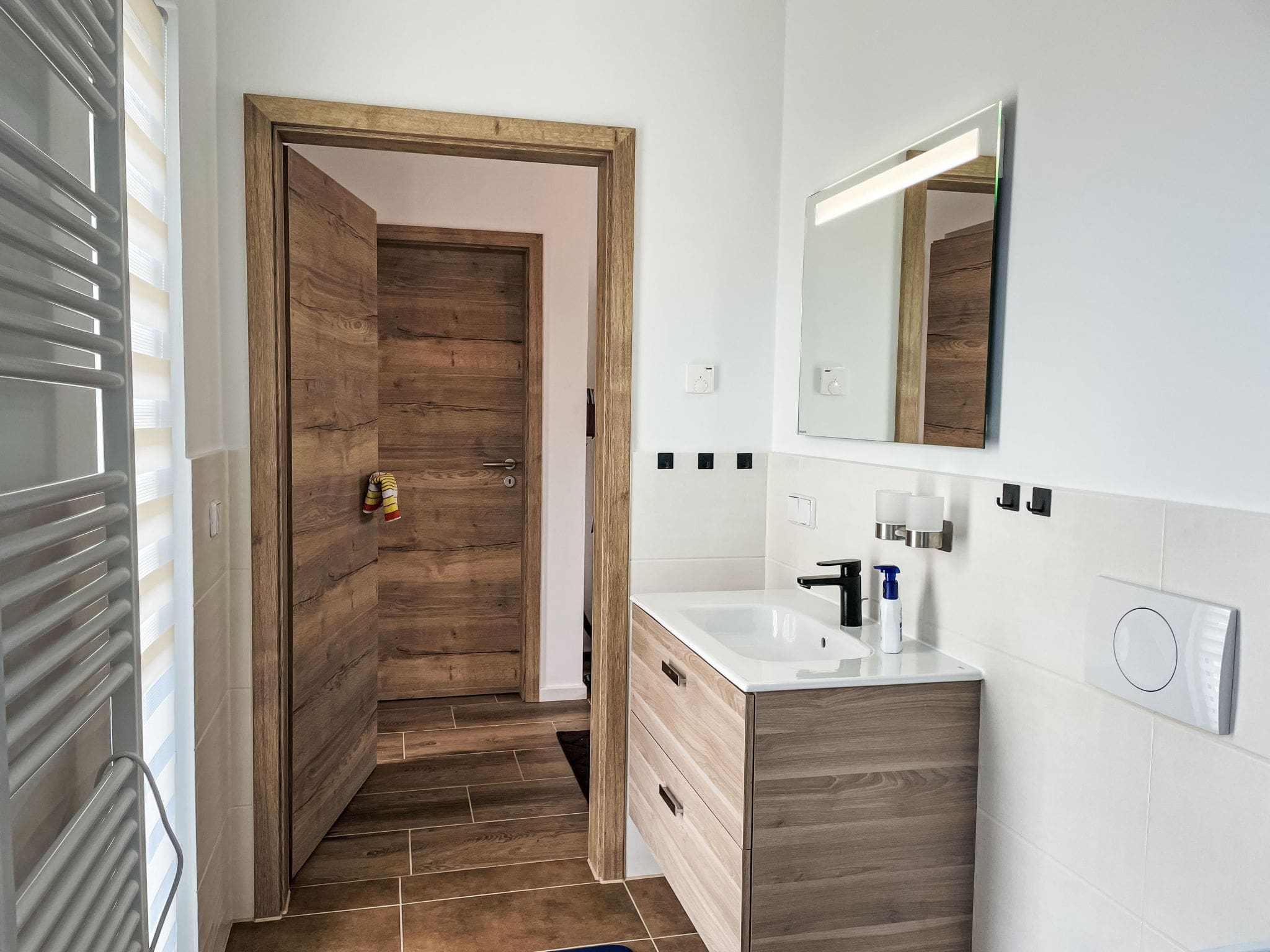 This non-smoking house features modern safety equipment including smoke alarms and fire extinguishers, plus practical amenities like a washing machine and iron. Free WiFi keeps guests connected, while the fireplace and efficient heating ensure year-round comfort. The property welcomes families but maintains a no-pets policy to preserve the pristine condition. Electric vehicle charging capabilities reflect the forward-thinking design, while water-efficient fixtures and LED lighting demonstrate environmental consciousness. Germany’s excellent infrastructure makes this location easily accessible from major cities while maintaining its peaceful rural character.