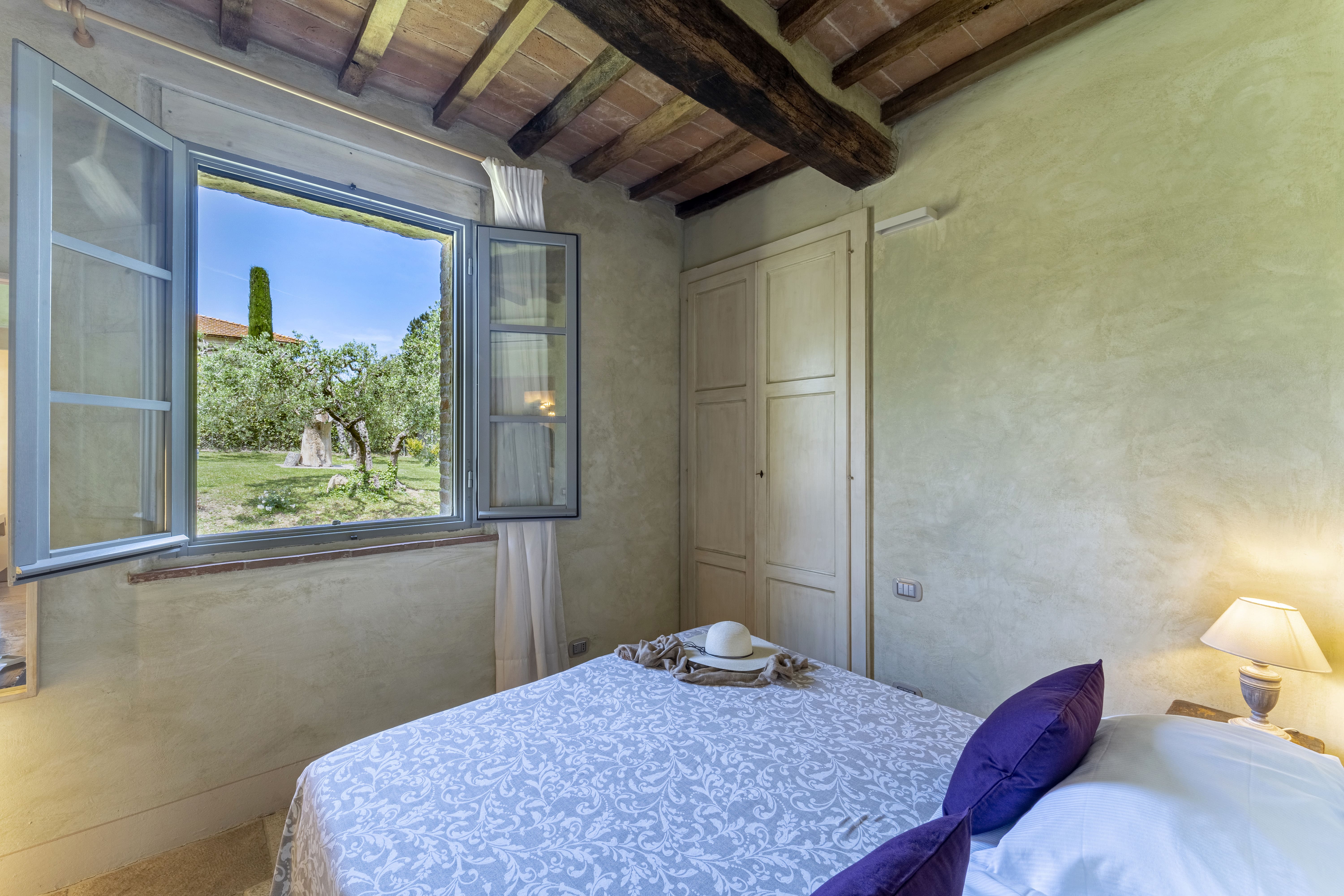 The apartment accommodates up to six guests, featuring three bedrooms and two bathrooms. We recommend having a car for easy access to nearby amenities, as the closest town with shops, bars, and restaurants is a short drive away. Pets are welcome, and the property is child-friendly. Discover more by browsing our luxury villa rentals in Italy.