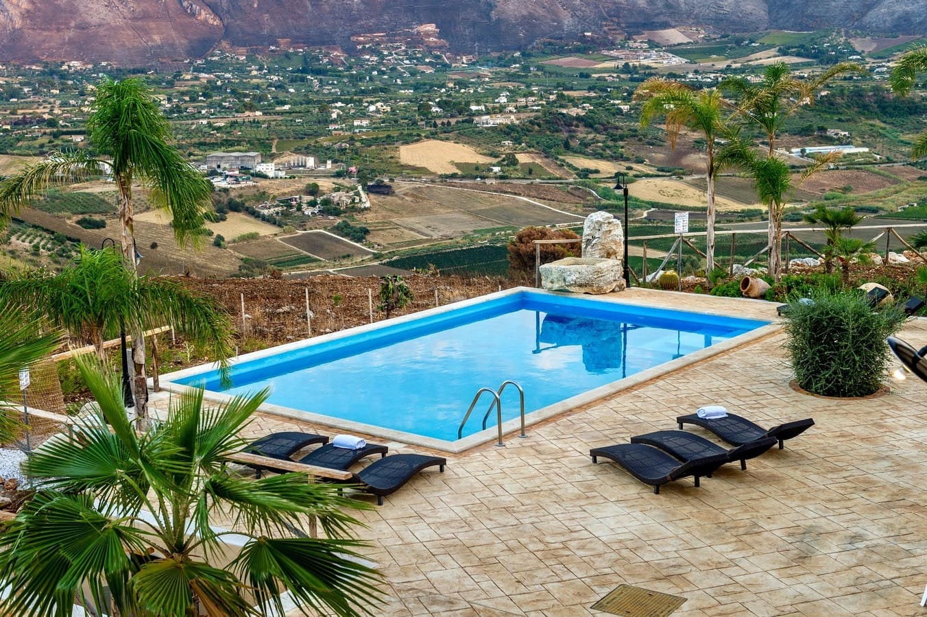 The outdoor areas of this Trapani apartment are just as captivating as the interiors. The swimming pool, surrounded by sun loungers, invites you to bask in the Sicilian sun, while the terrace offers stunning views of the sea and countryside. Enjoy alfresco dining under the stars, taking in the tranquil ambiance and breathtaking vistas that define this unique location.