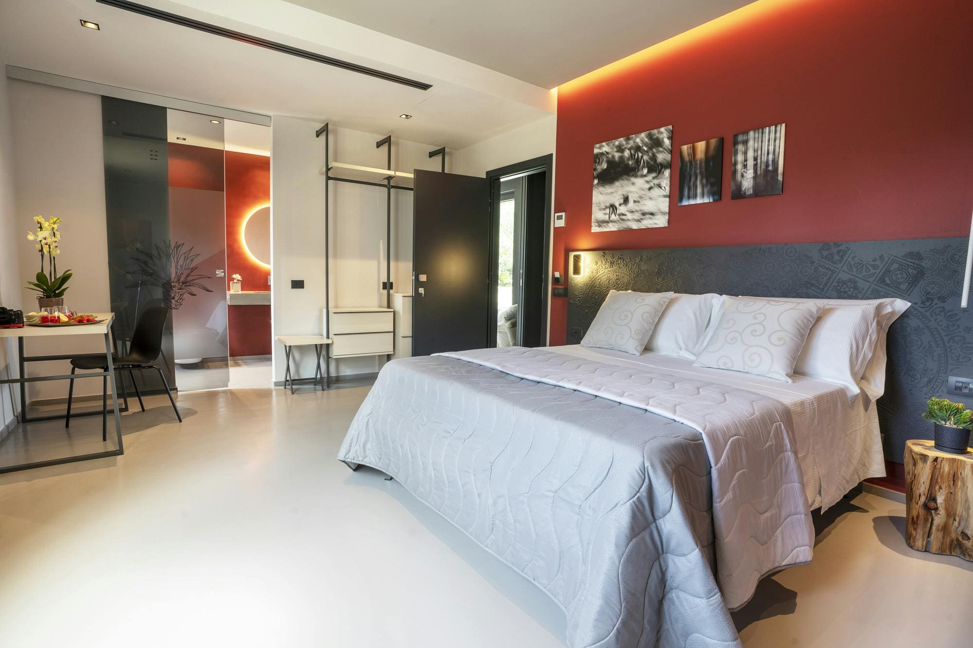 The villa’s outdoor spaces are a true highlight, with nearly two hectares of olive groves and vineyards providing a serene backdrop. The private swimming pool, open from April to October, offers a refreshing escape, while the panoramic terrace is perfect for enjoying Trapani’s famous sunsets. Outdoor dining and lounging areas invite relaxation amid the tranquil countryside.