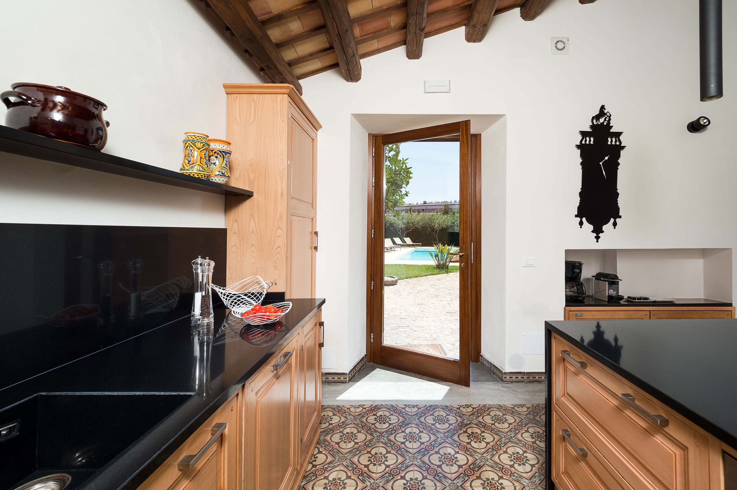 Step into a world of sophistication inside this luxury apartment rental in Sicily. The interior is designed with a seamless blend of traditional charm and modern elegance, featuring exposed beams and terracotta floors. The spacious living areas offer ample seating for relaxation, while the fully equipped kitchen is ideal for culinary adventures. Each of the eight bedrooms is tastefully decorated, providing a serene retreat with en-suite bathrooms for ultimate privacy.