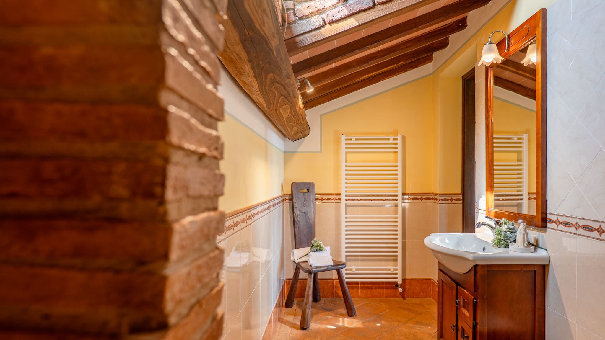 Step into a world where rustic charm meets contemporary style. The apartment features three beautifully appointed bedrooms, each with its own en-suite bathroom, providing privacy and comfort for up to six guests. The interiors boast original features like beamed ceilings and terracotta floors, paired with modern amenities such as air conditioning. The living area is spacious and inviting, perfect for family gatherings or quiet evenings in. A fully equipped kitchen allows for home-cooked meals, celebrating the flavors of Tuscany.