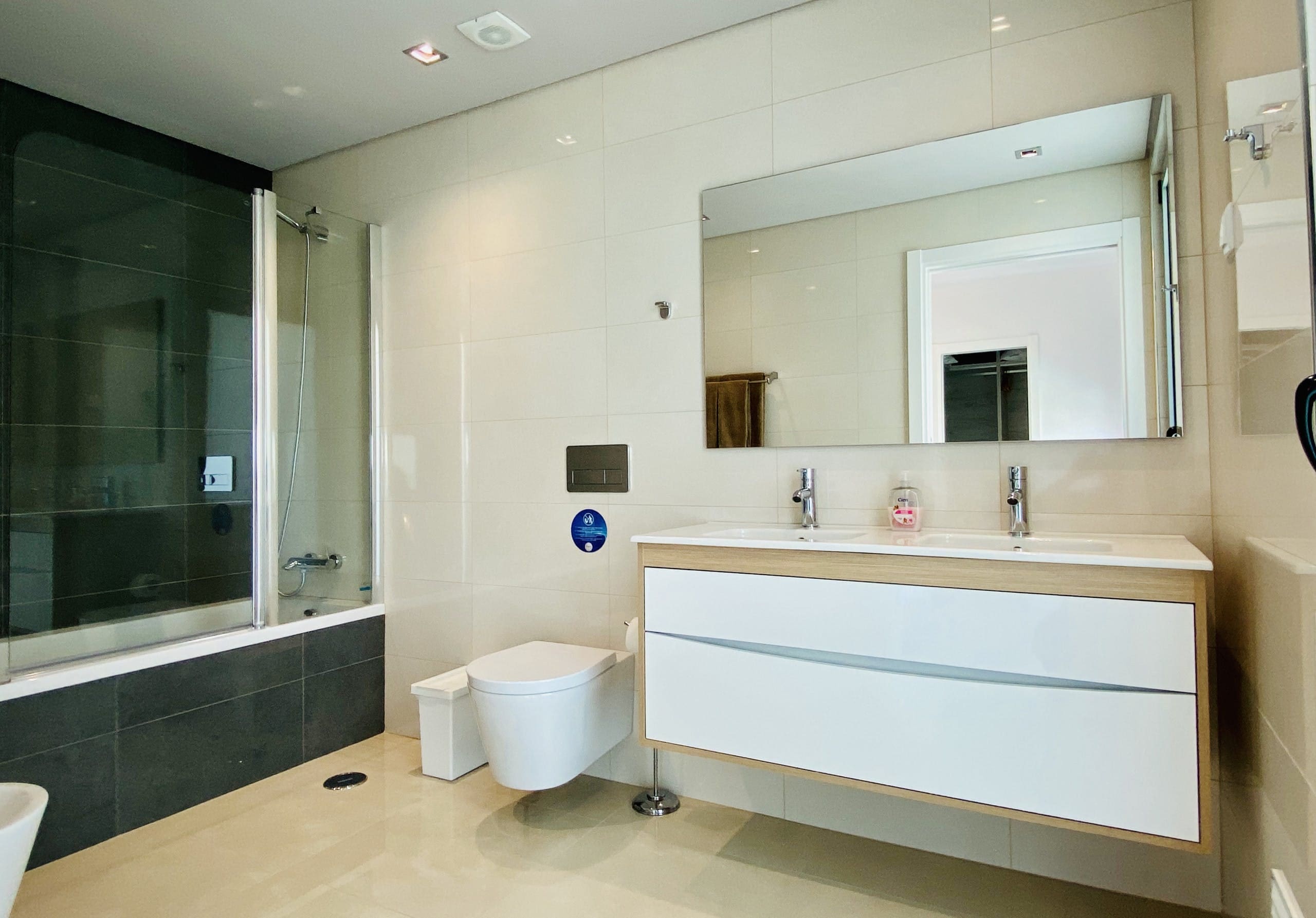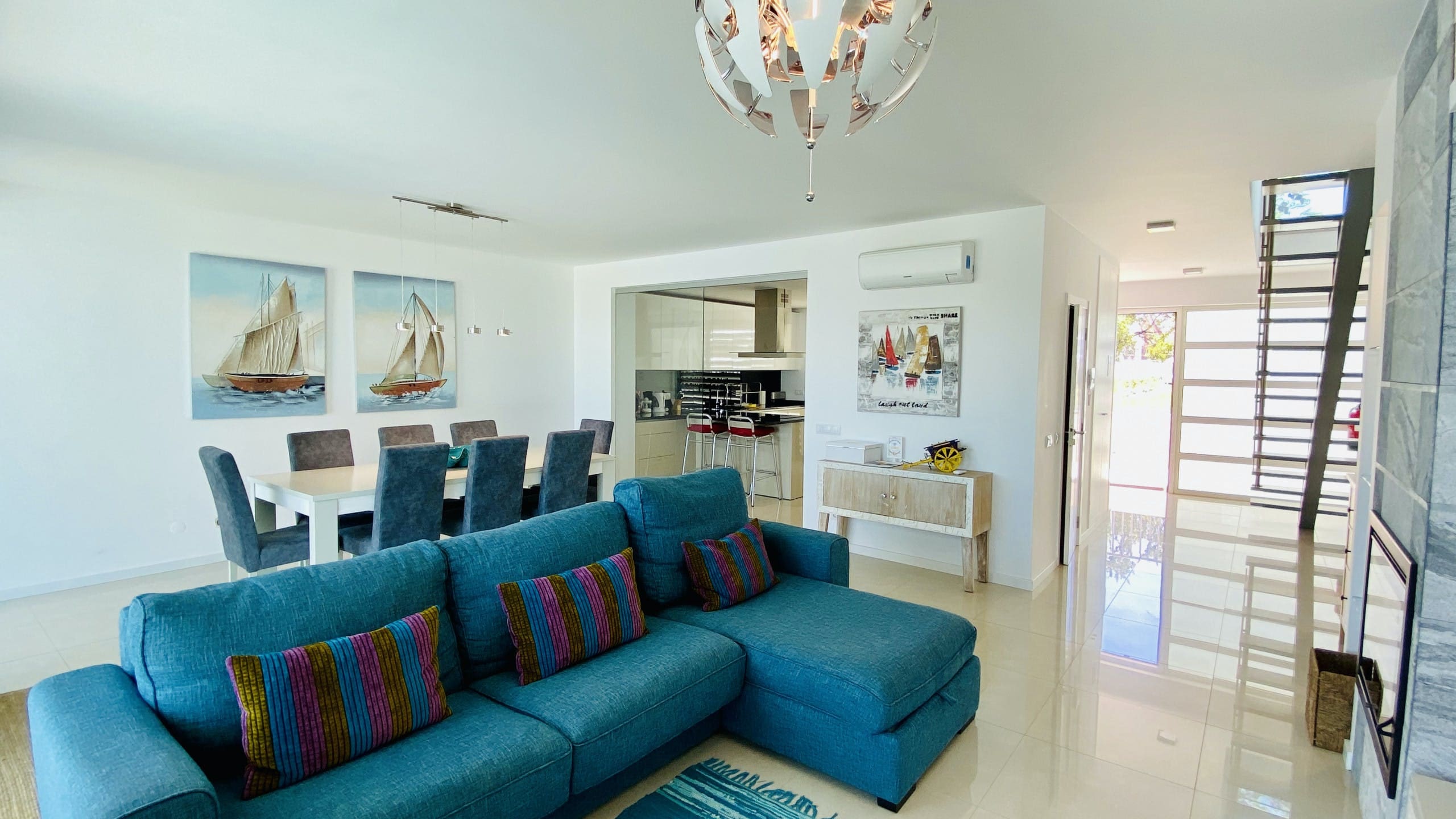 Step inside to discover a spacious interior adorned with elegant decor, offering a harmonious blend of comfort and style. With six bedrooms, each featuring its own en-suite bathroom, this apartment ensures privacy and relaxation for up to 13 guests. The living areas are designed for both comfort and entertainment, with plush seating and large windows that frame the breathtaking ocean views. The modern kitchen is fully equipped, perfect for preparing delightful meals to enjoy in the sophisticated dining area.
