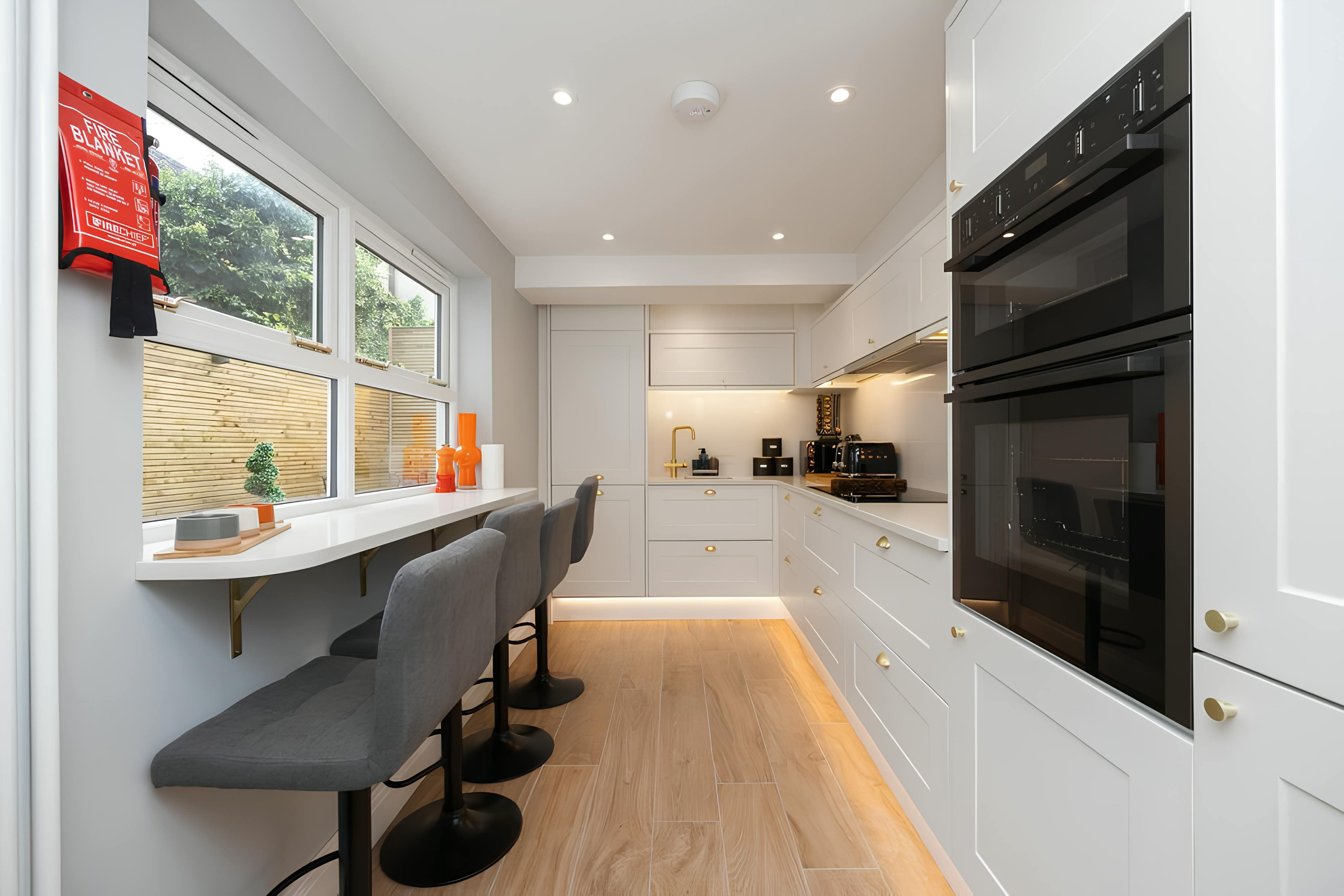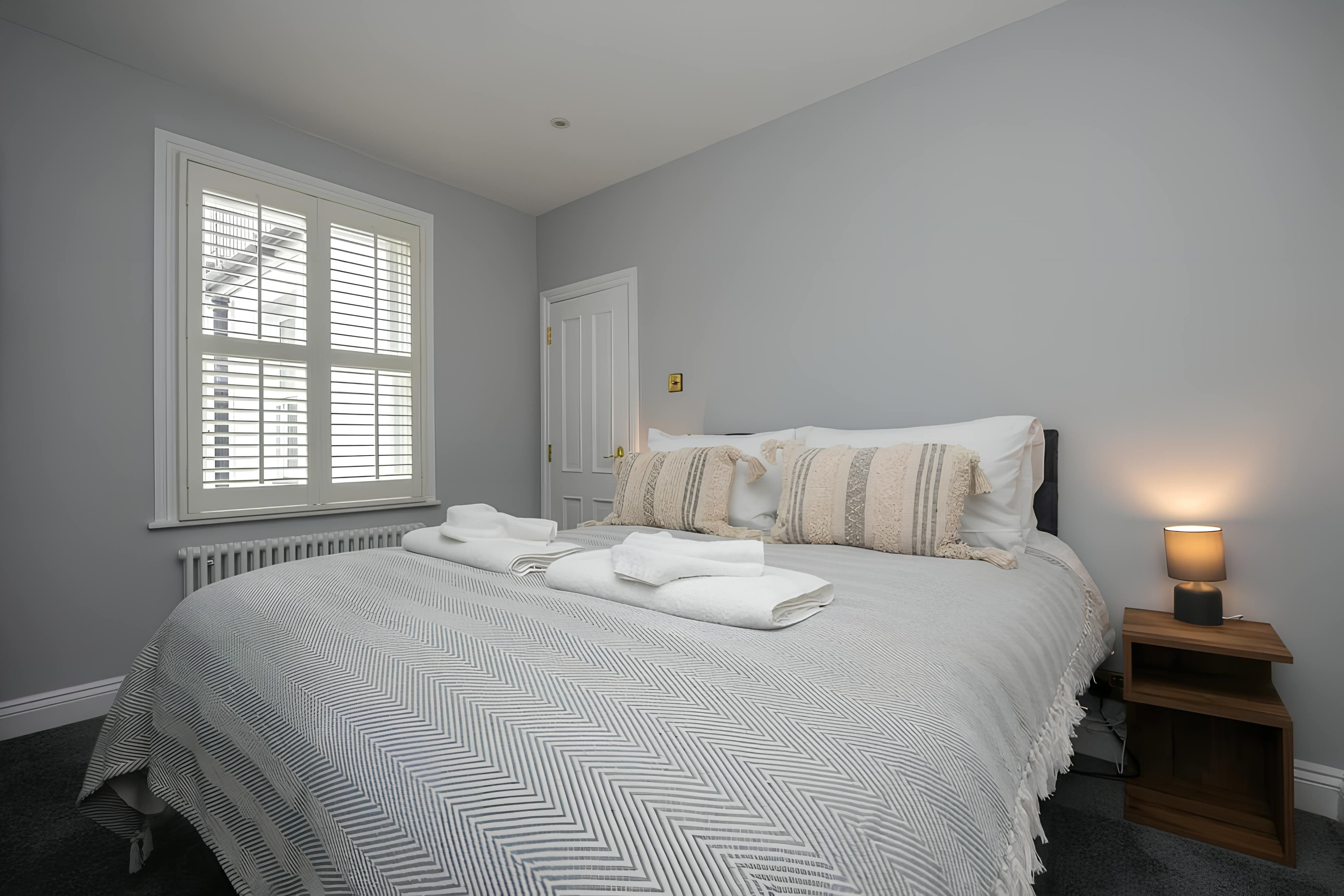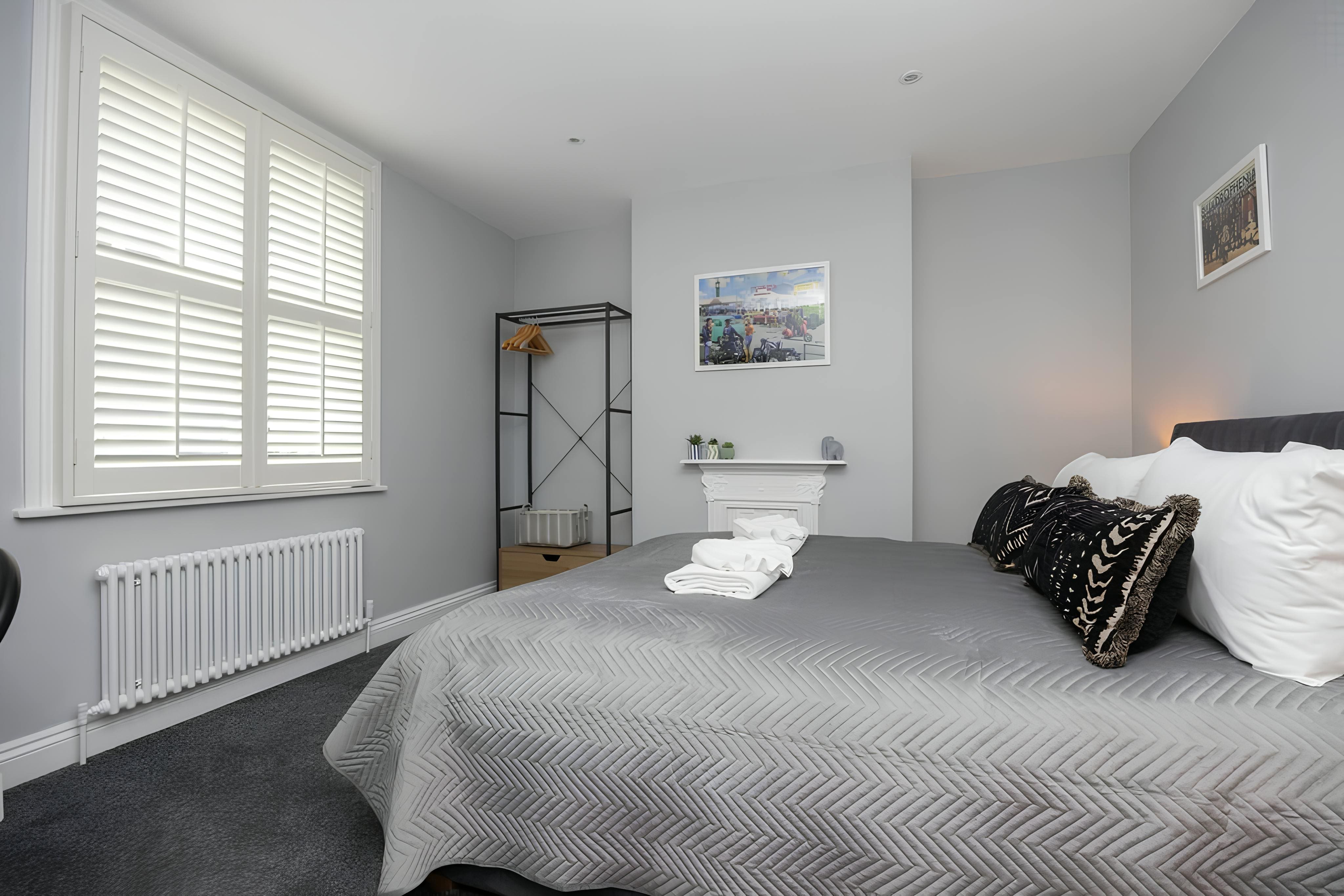 Spread over three floors, the interior of this townhouse is a testament to both elegance and functionality. The high-ceilinged rooms are adorned with statement fireplaces that echo the Victorian heritage of the property. The sunlit living area is perfect for leisurely mornings or festive dinners, while the well-equipped kitchen caters to all culinary needs. The four bedrooms, including a flexible king that can be converted into twins, offer serene retreats for up to ten guests.