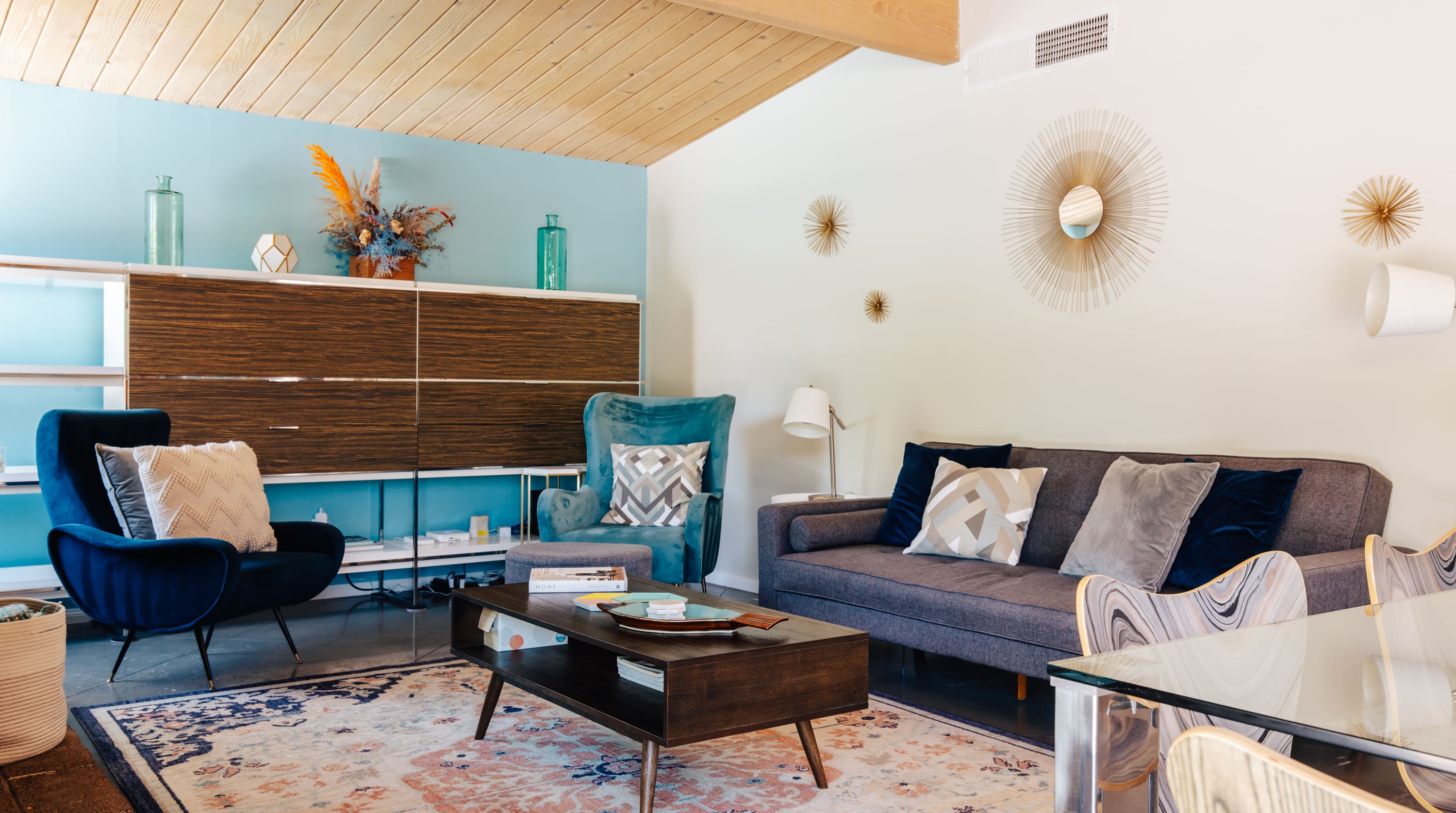 The outdoor areas of this luxury house rental in Palm Springs are equally captivating. Spend your days lounging by the unheated swimming pool, or unwind in the hot tub while taking in the stunning mountain views. The garden, with its lush greenery, is a perfect spot for games or quiet reflection. Outdoor dining under the stars offers a magical experience, making every meal a celebration.