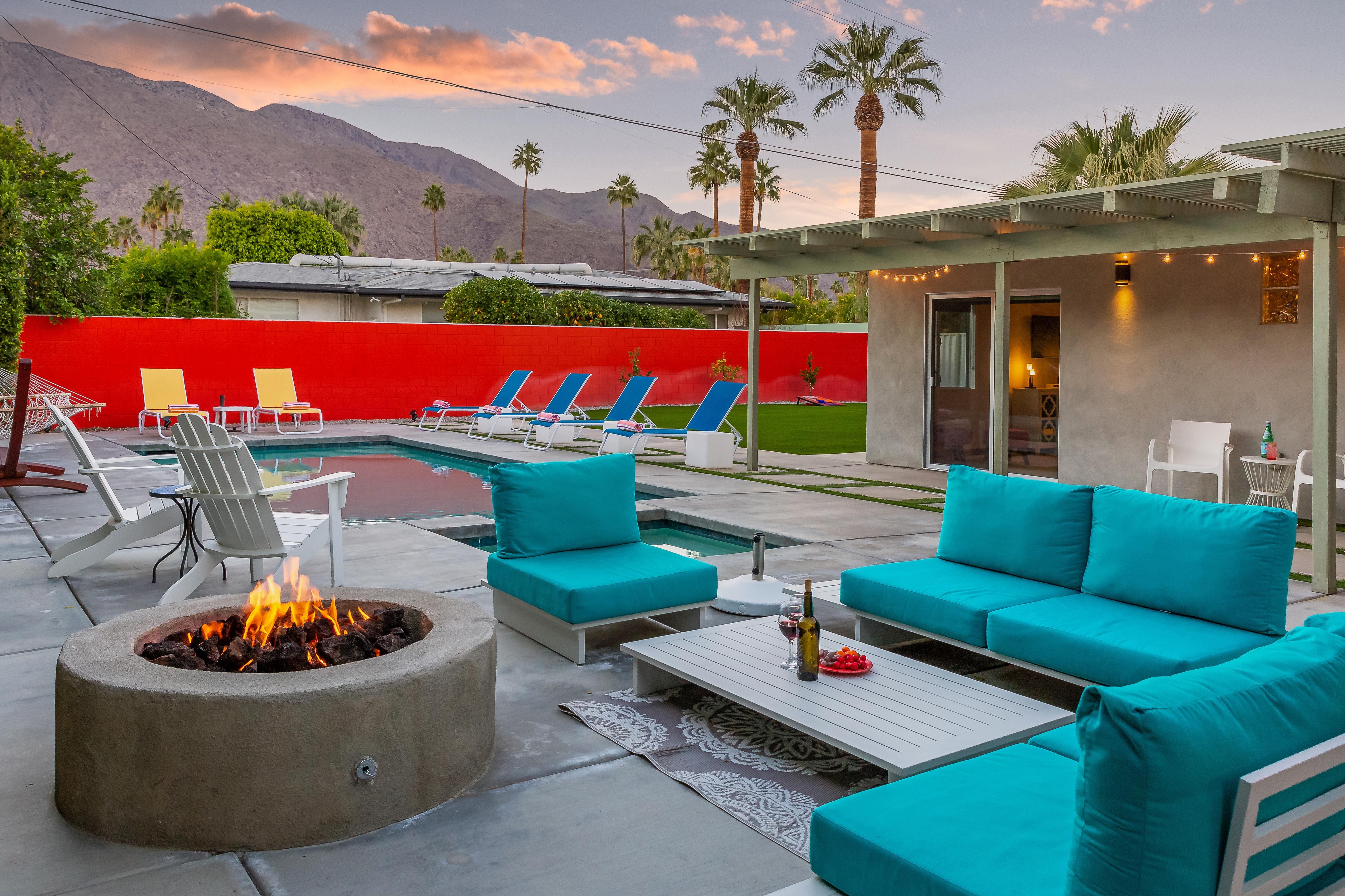 Embrace the quintessential Palm Springs lifestyle in the outdoor areas of this stunning apartment. The private garden and pool area, surrounded by lush greenery, invite you to relax and unwind. Enjoy sun-soaked afternoons by the heated swimming pool or gather around the fire pit for cozy evenings under the stars. The outdoor dining area is perfect for alfresco meals, offering breathtaking views of the surrounding mountains.