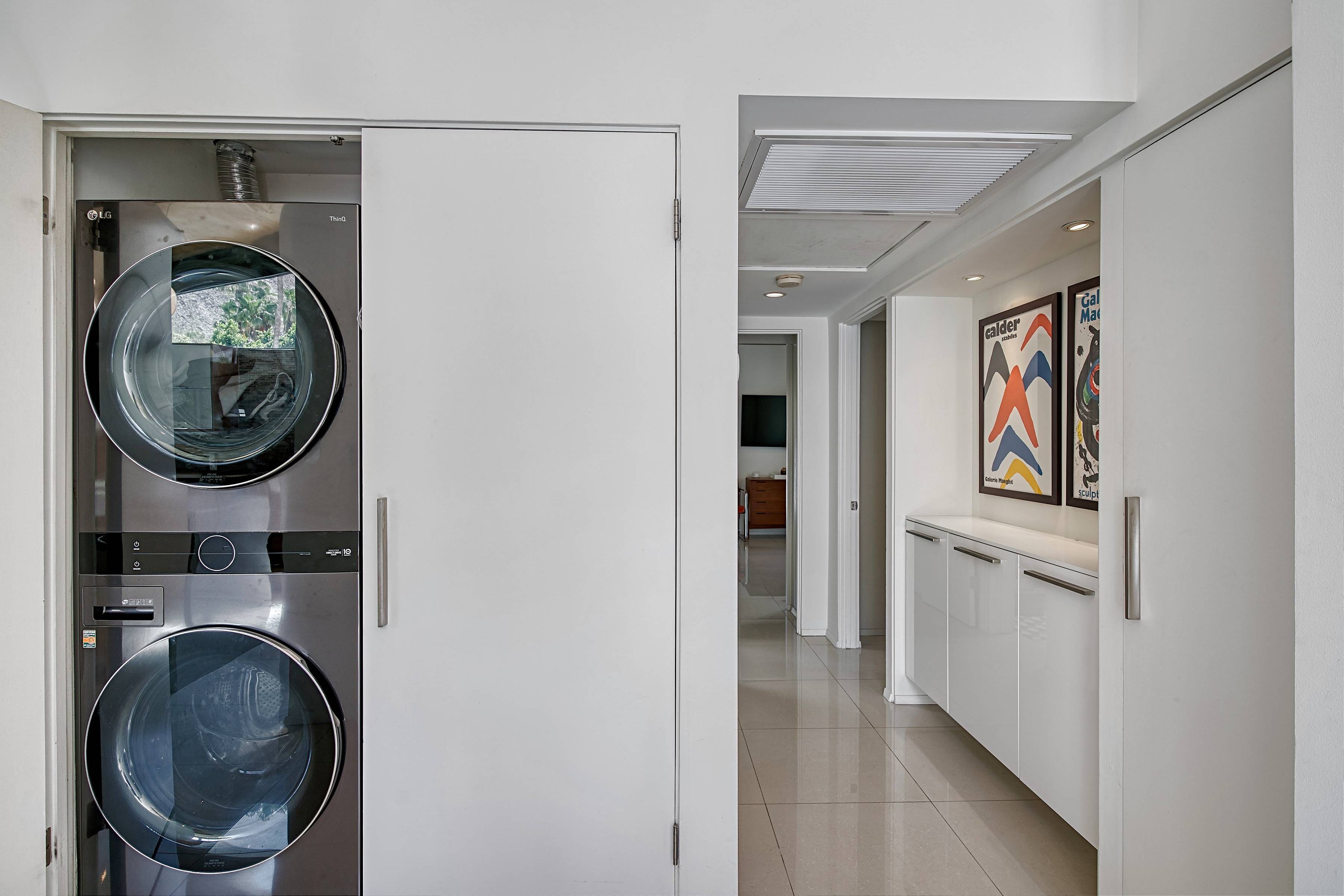 Outside, discover a private oasis with a shimmering pool, lush lawns, and stylish patios, all framed by the majestic San Jacinto Mountains. The garden offers a bocce court for leisurely afternoons, while the hot tub provides a perfect spot for stargazing. For those interested in eco-friendly travel, the villa includes a Tesla charging point. Pool heating is available on request for an additional charge.