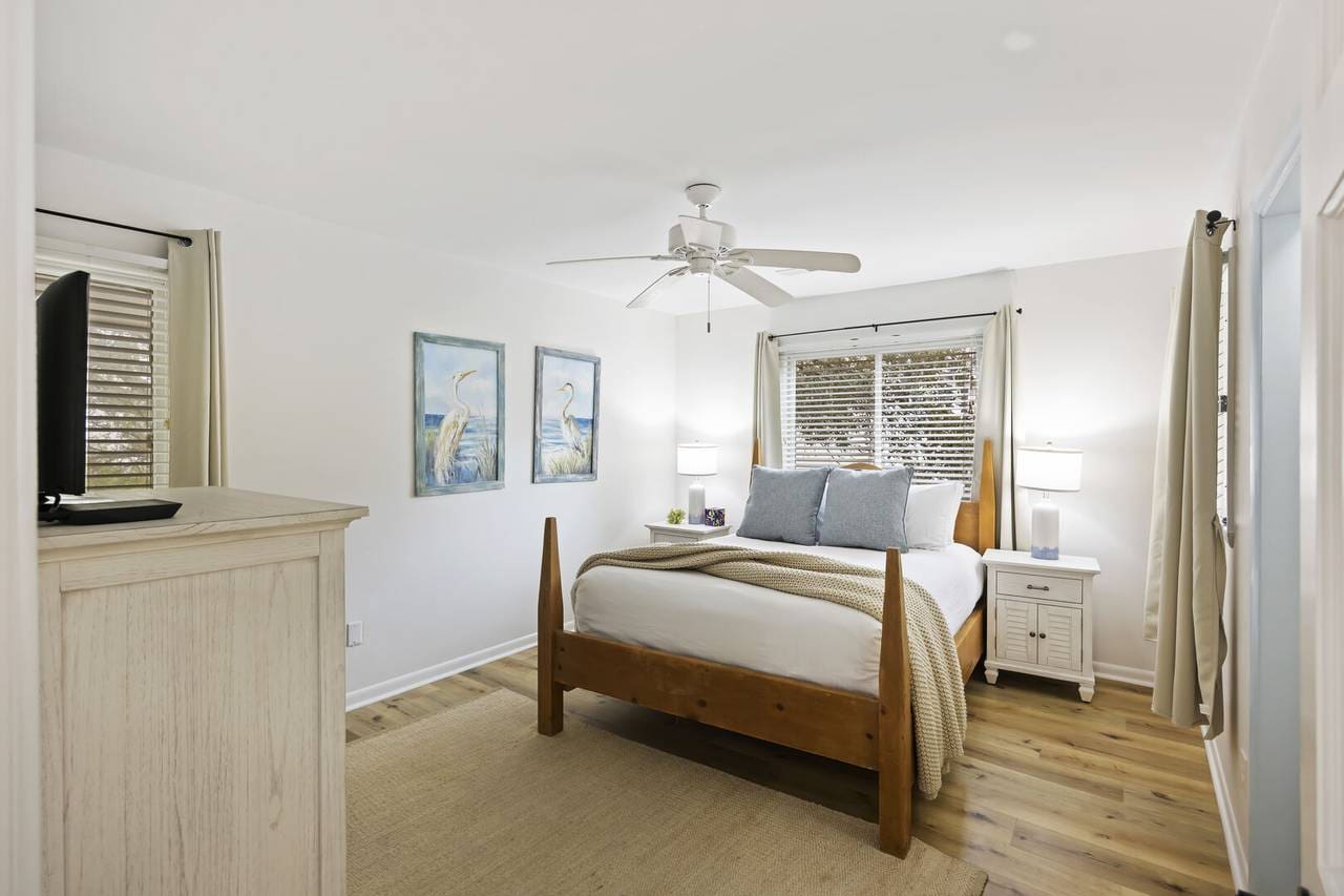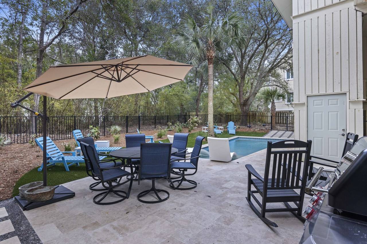 The villa’s outdoor spaces are a true haven for leisure and entertainment. A private deck with a hot tub offers the ultimate relaxation experience with stunning seaviews. Enjoy al fresco dining on the terrace, surrounded by lush greenery and the soothing sounds of the nearby beach. Guests can also take advantage of the shared on-site swimming pool, perfect for a refreshing dip on warm Charleston days.