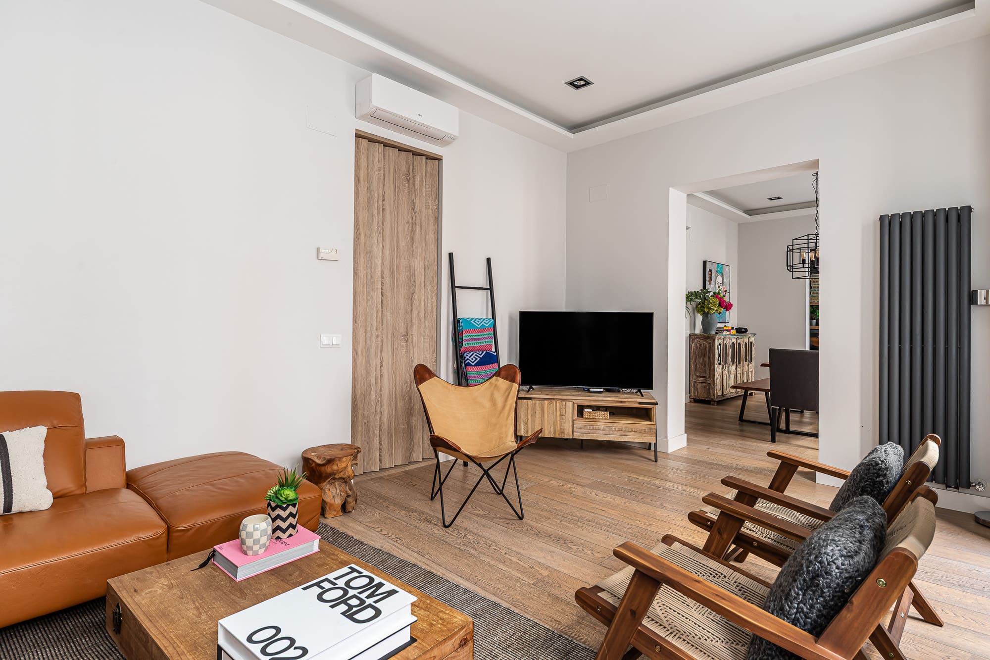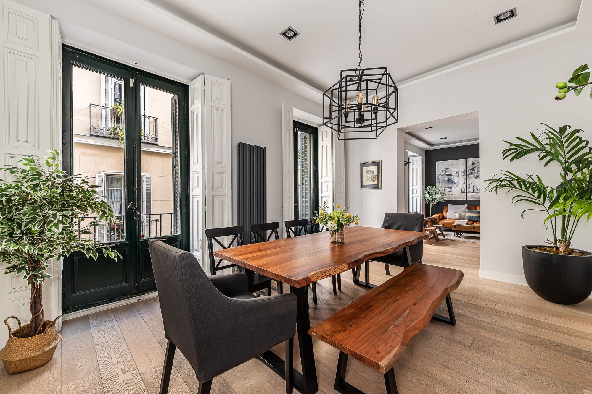 Discover the vibrant heart of Madrid with a luxury apartment rental in the lively Chueca neighborhood. This stunning four-bedroom apartment provides a stylish and comfortable base for exploring the city, accommodating up to eight guests with ease.