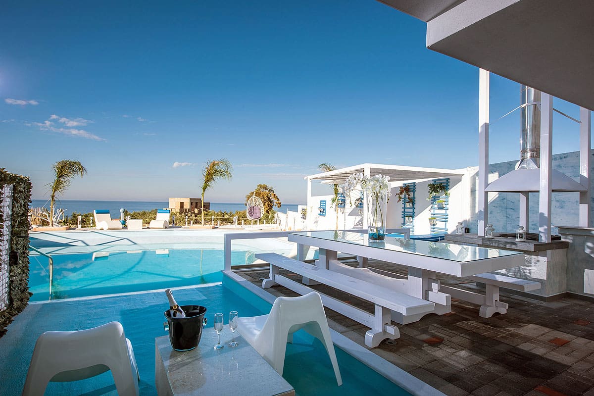 Located just a short drive from the vibrant city of Heraklion, guests can explore Crete’s rich history and cultural sites. The charming village of Amoudara, with its shops and restaurants, is only 6 kilometers away. For beach lovers, the nearest sandy shores are a mere five-minute drive. Immerse yourself in the local culture and cuisine, or explore our full collection of luxury villa rentals in Crete. For more on what to see and do, visit the Crete tourism guide.