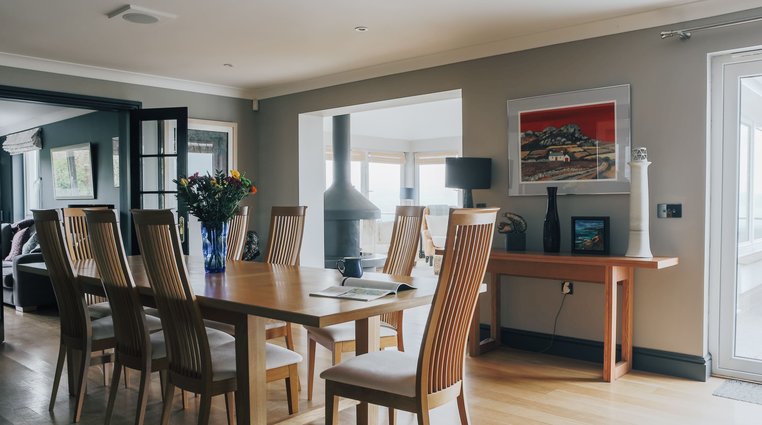 Step inside to find a seamless blend of modern design and classic British charm. The apartment spans three floors, offering spacious living areas with breathtaking seaviews. The centerpiece of the living room is a stunning wood-burning stove, perfect for cozy evenings. The state-of-the-art kitchen is fully equipped, making it a delight for culinary enthusiasts. Each of the four bedrooms is a haven of relaxation, adorned with Egyptian cotton linens and Melin Tregwyn wool, ensuring a restful night’s sleep.