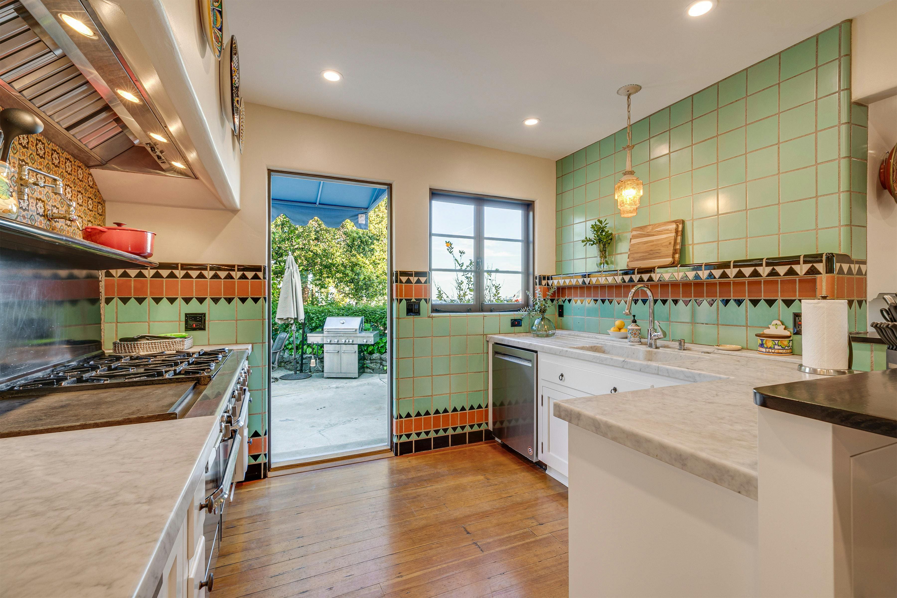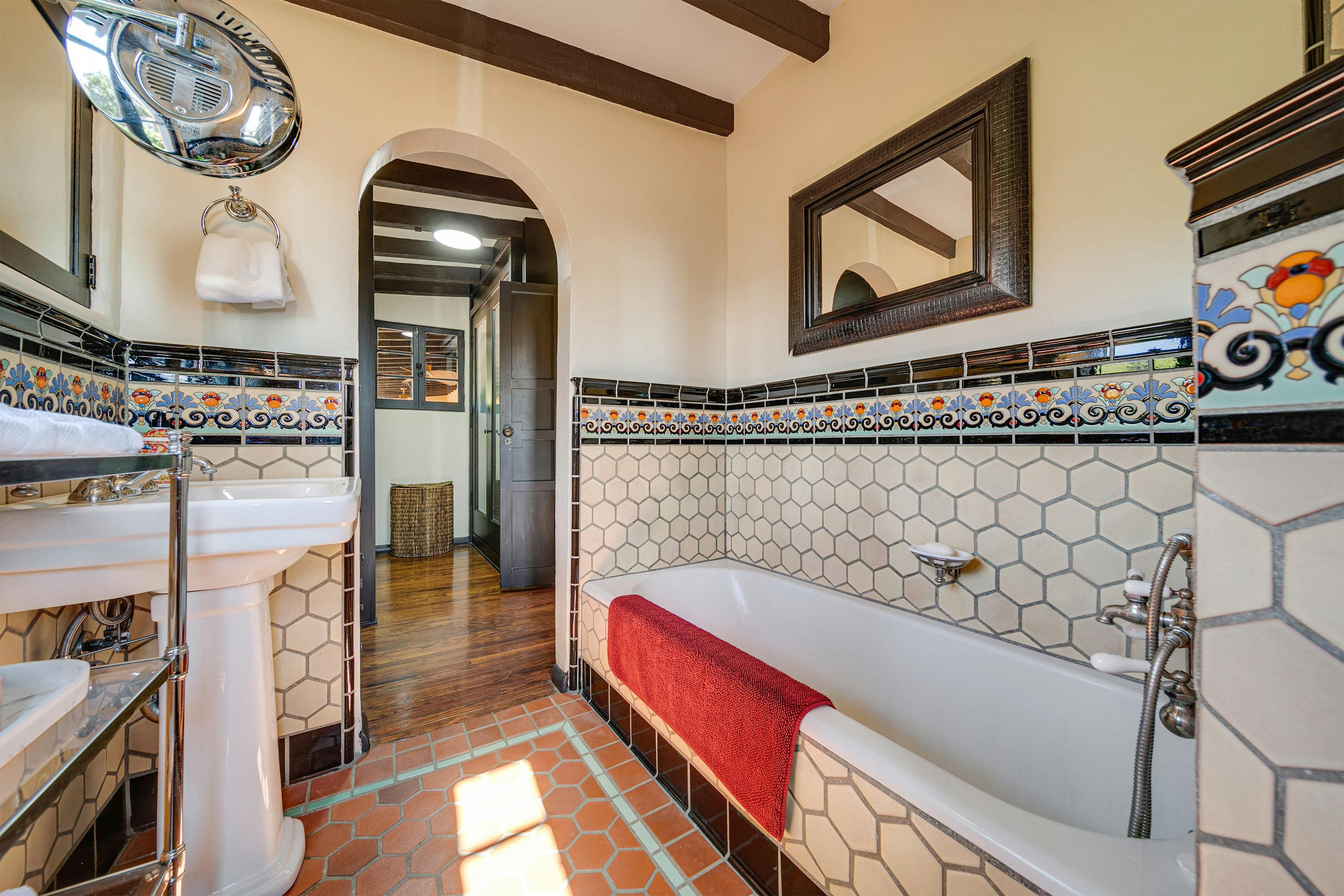 The outdoor areas of this Glendale house are nothing short of spectacular. Dive into the refreshing swimming pool or unwind in the soothing hot tub. The beautifully manicured gardens and enclosed courtyard offer a perfect spot for reading or relaxation, with stunning views of Downtown Los Angeles enhancing the tranquility of the setting.