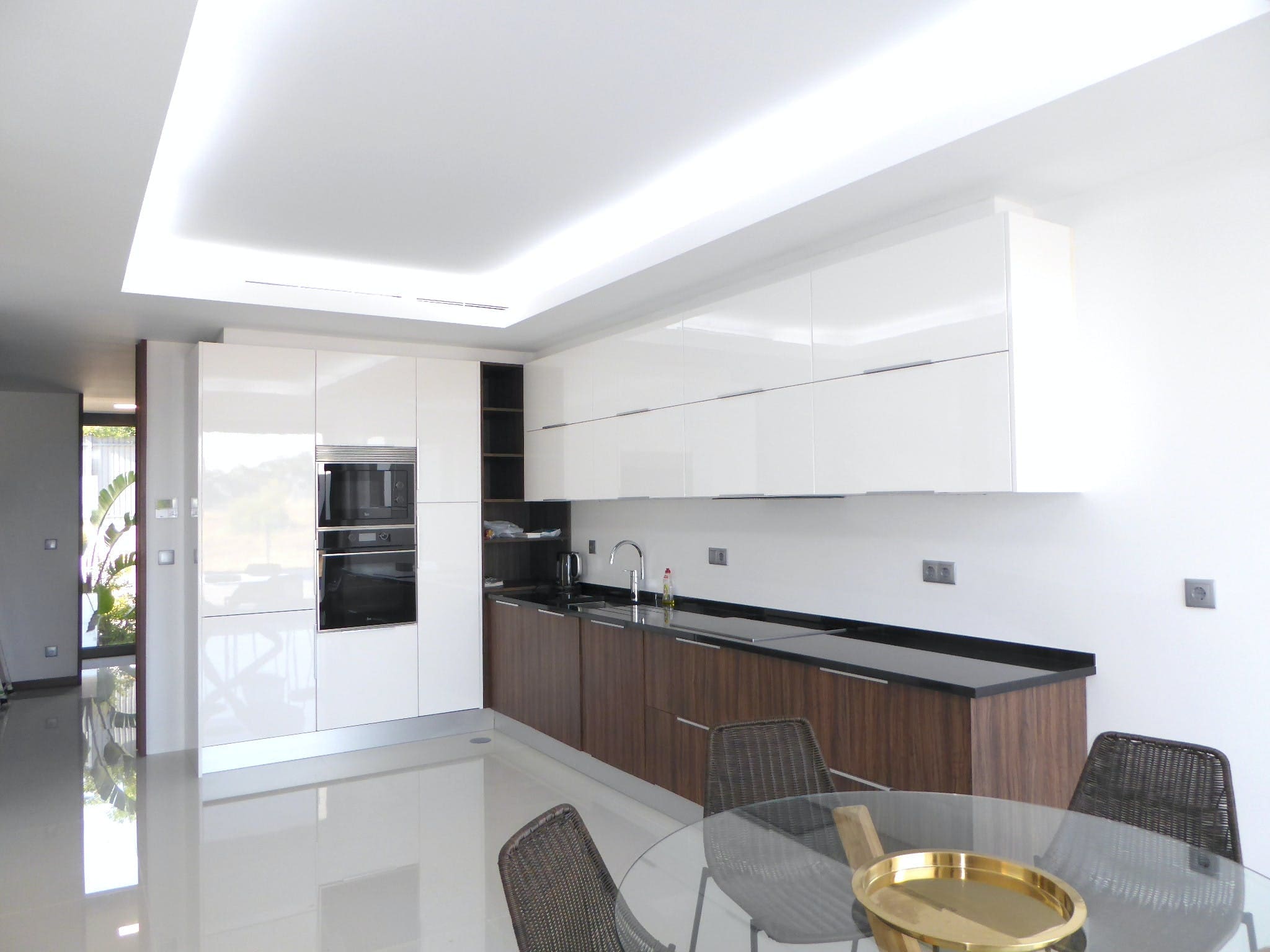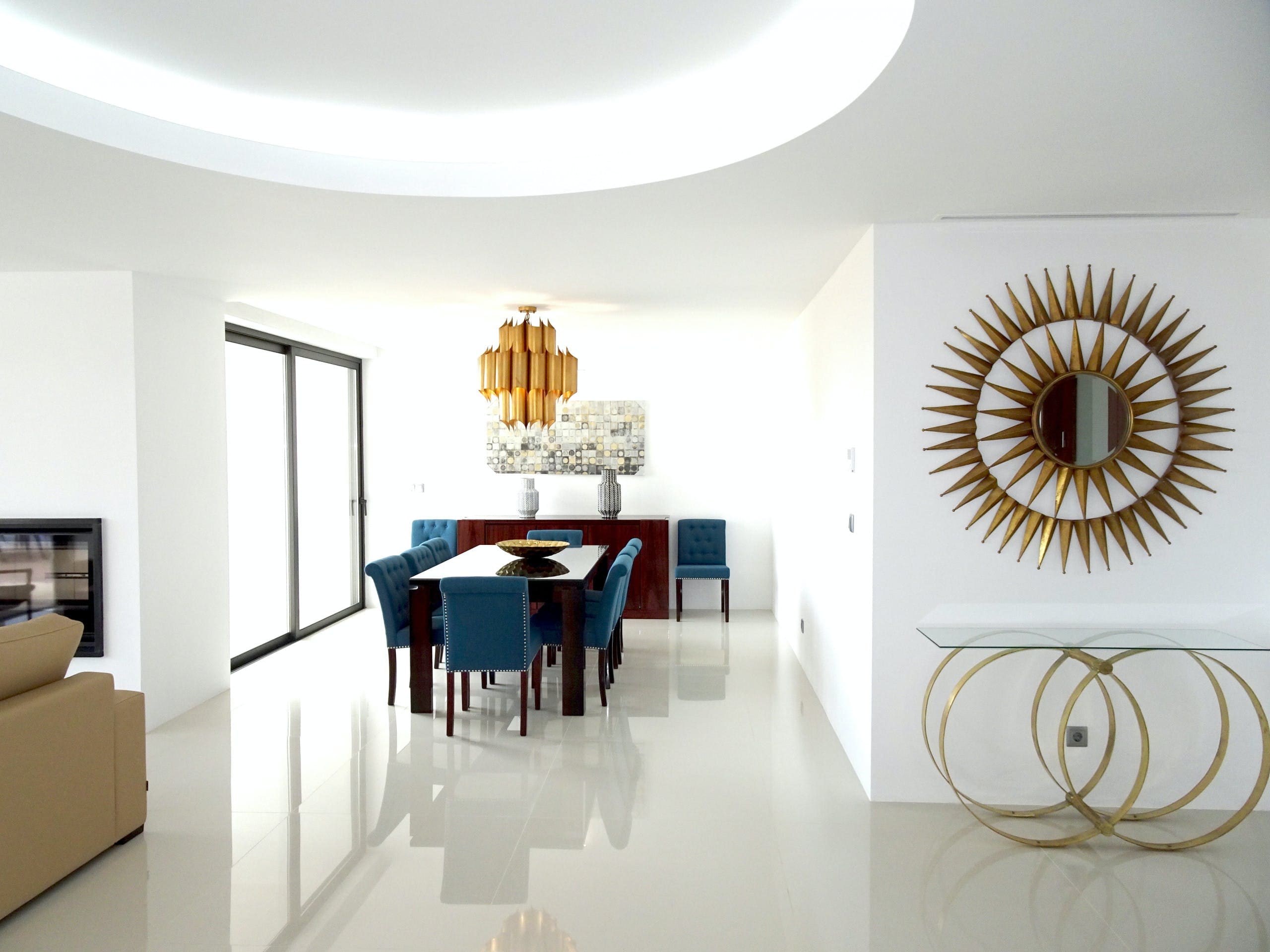 Step into a world of refined comfort. The apartment’s interior is a masterpiece of contemporary design, featuring open-plan living spaces that seamlessly blend modern amenities with timeless elegance. The living area is bathed in natural light, thanks to floor-to-ceiling windows that offer panoramic views of the surrounding landscape. Each of the five bedrooms is a sanctuary of tranquility, equipped with plush bedding and electric shutters for a restful night’s sleep. The fully-equipped kitchen is perfect for preparing gourmet meals, while the spacious dining area doubles as a convenient workspace for remote working.