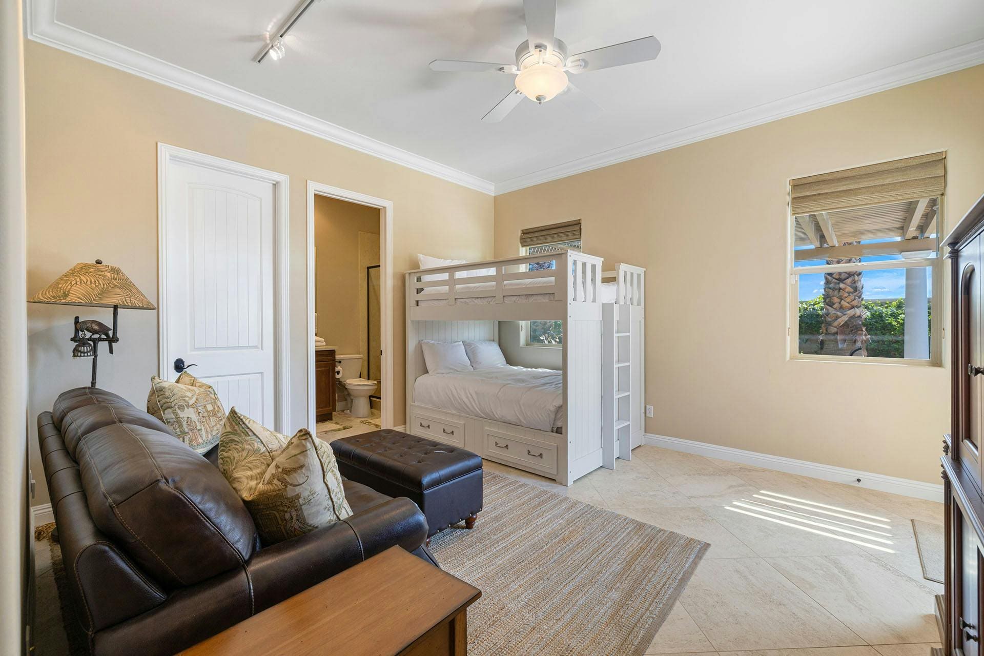 The villa accommodates up to 12 guests across five bedrooms and five bathrooms. With free parking for up to five cars and an electric vehicle charger, convenience is at your doorstep. Note that the swimming pools are not fenced, so supervision is necessary for young children. Browse our luxury villa rentals in United States for more properties.