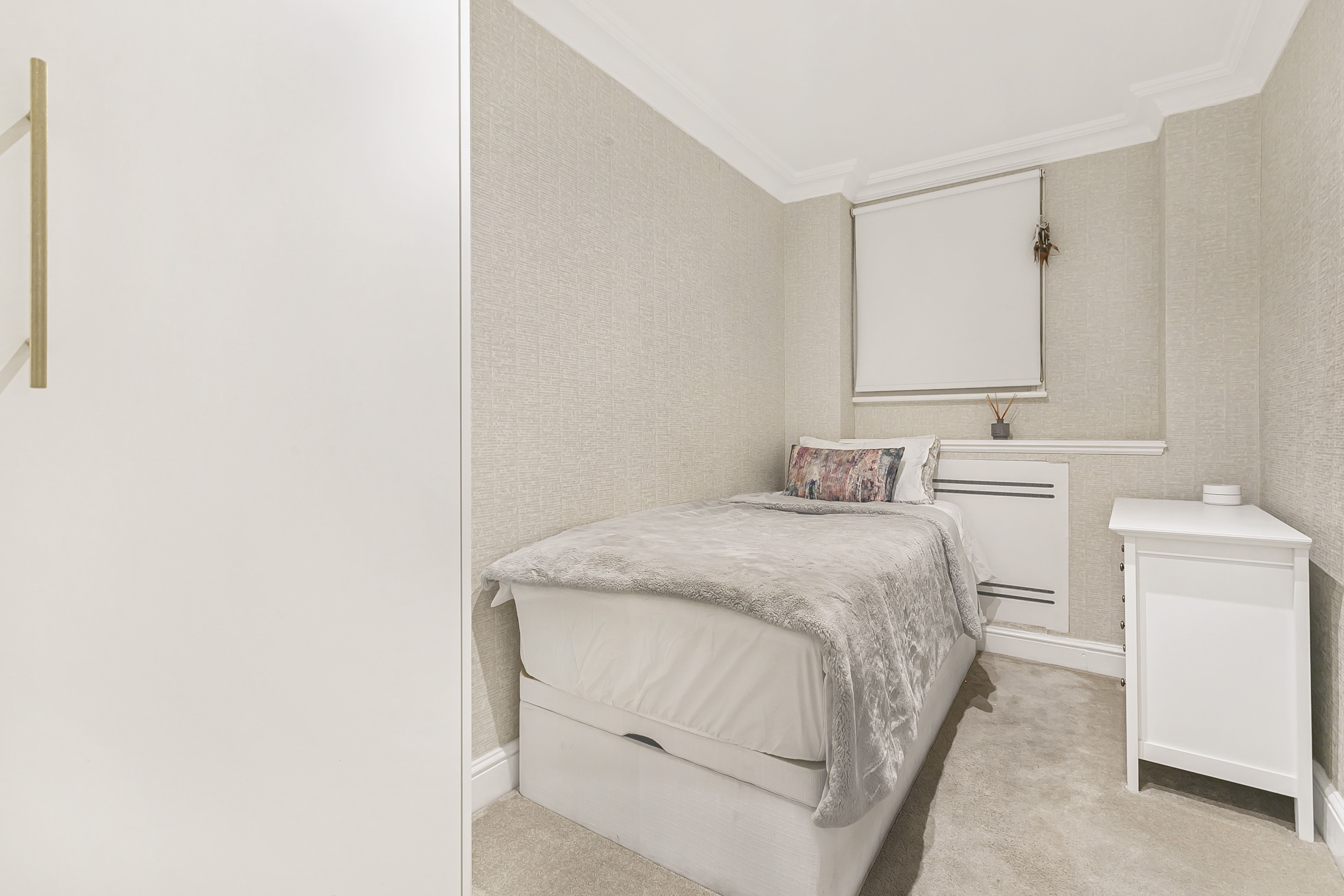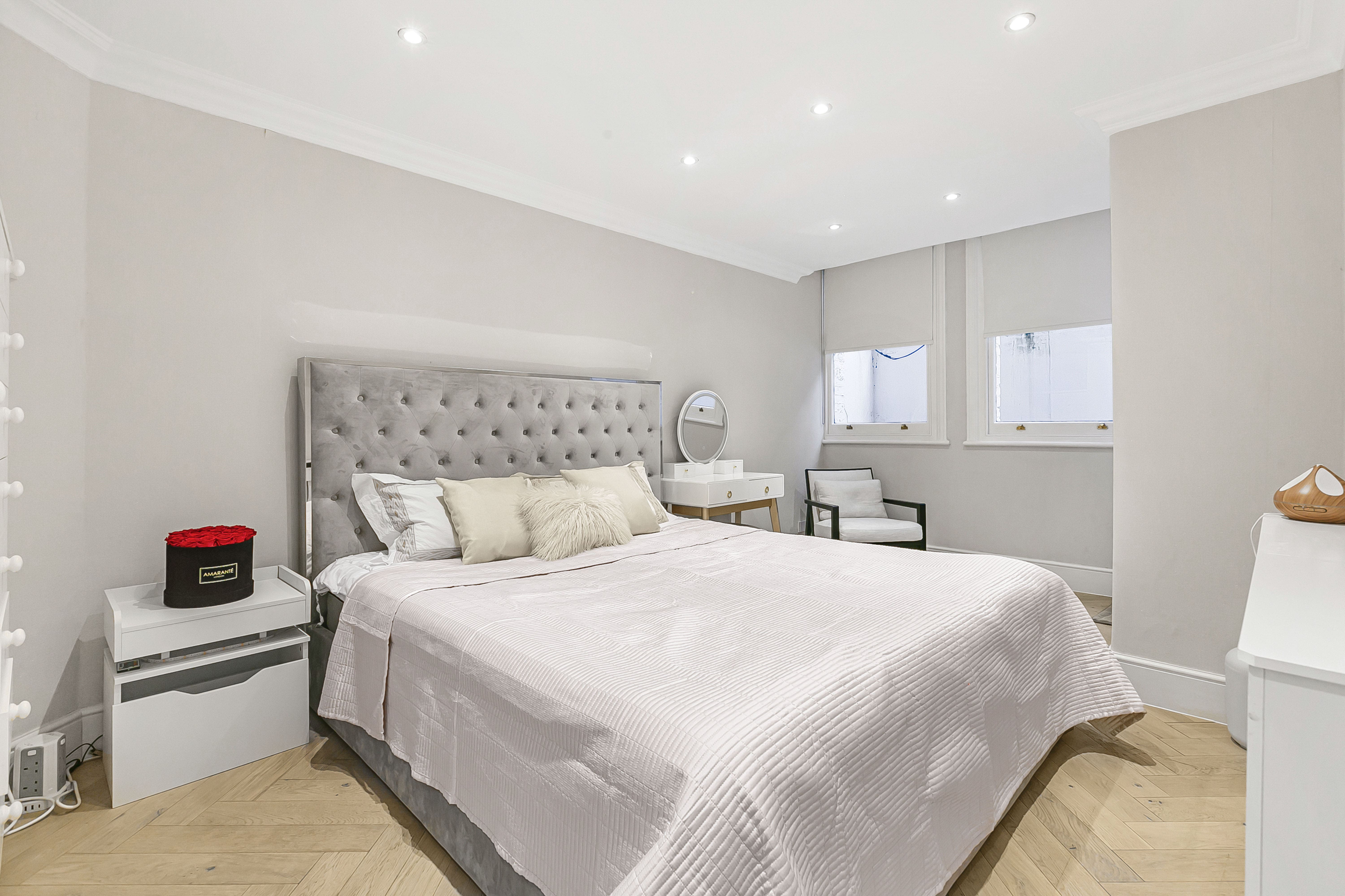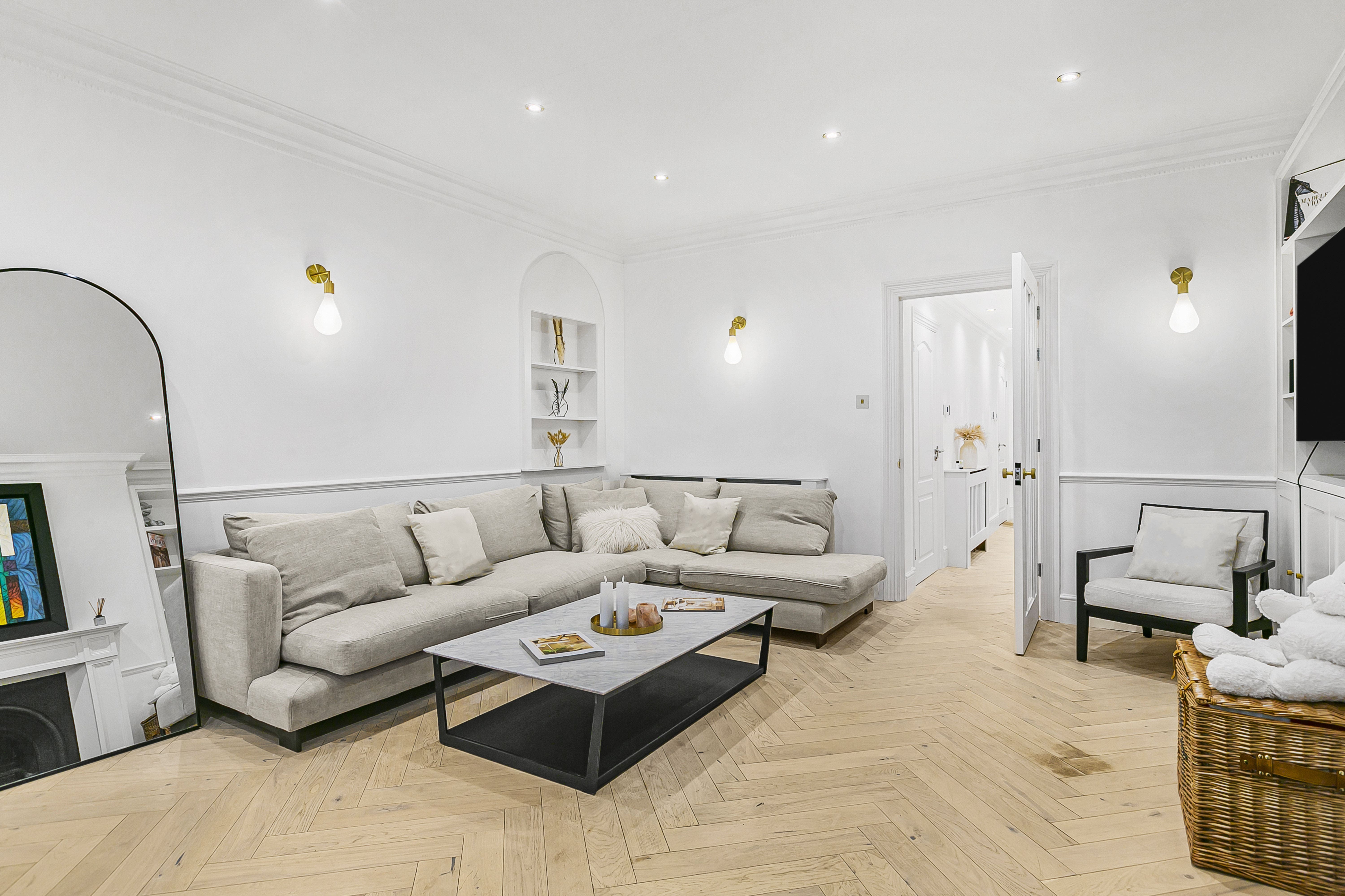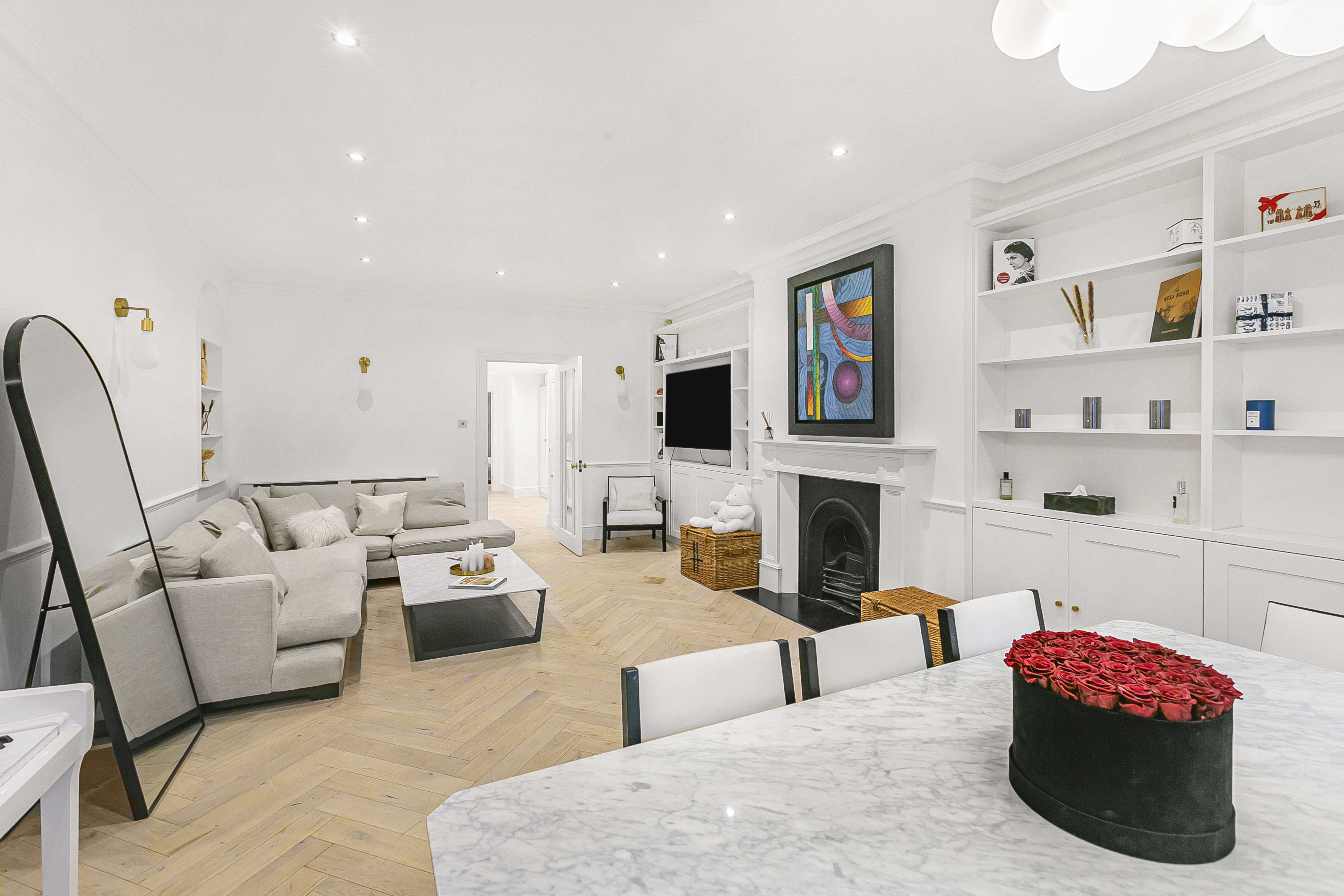 While the apartment does not feature expansive gardens or a pool, its location in Kensington means that the greenery of Hyde Park is just a short walk away. The balcony offers a small outdoor space to enjoy the vibrant street life below, though some street noise can be expected. The apartment’s position also means easy access to London’s excellent public transport network.