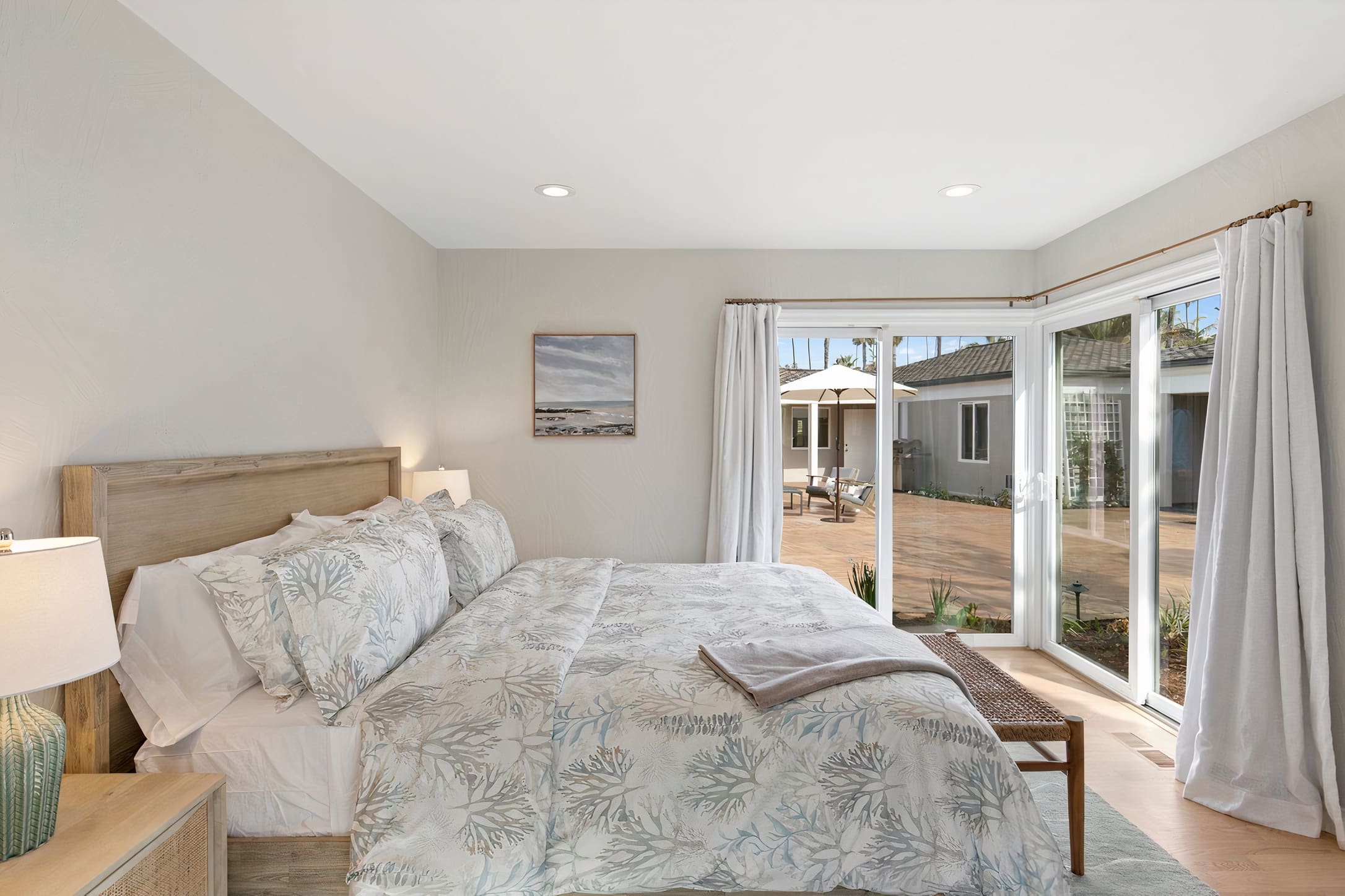 The outdoor spaces of this La Jolla villa are nothing short of spectacular. A private swimming pool serves as the centerpiece, complemented by sun-drenched terraces and lush gardens. Enjoy alfresco dining with the Pacific Ocean as your backdrop, or unwind with a book in one of the cozy outdoor lounges. The villa’s beachfront location provides direct access to the golden sands and sparkling waves of Windansea Beach.