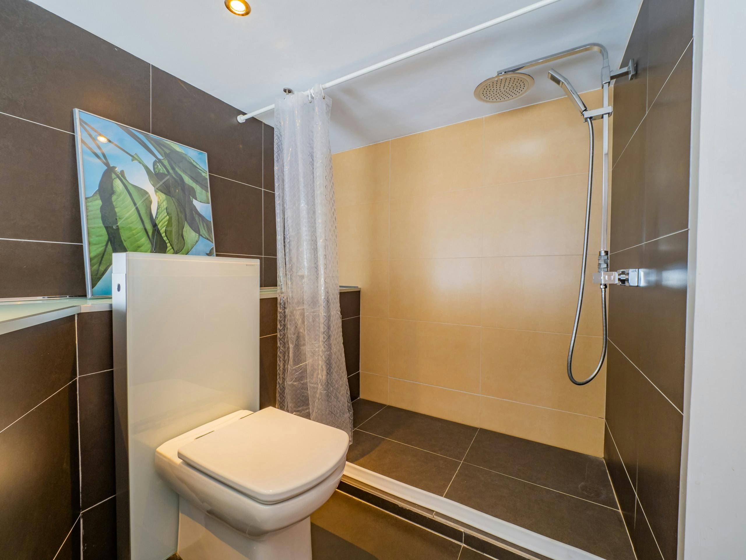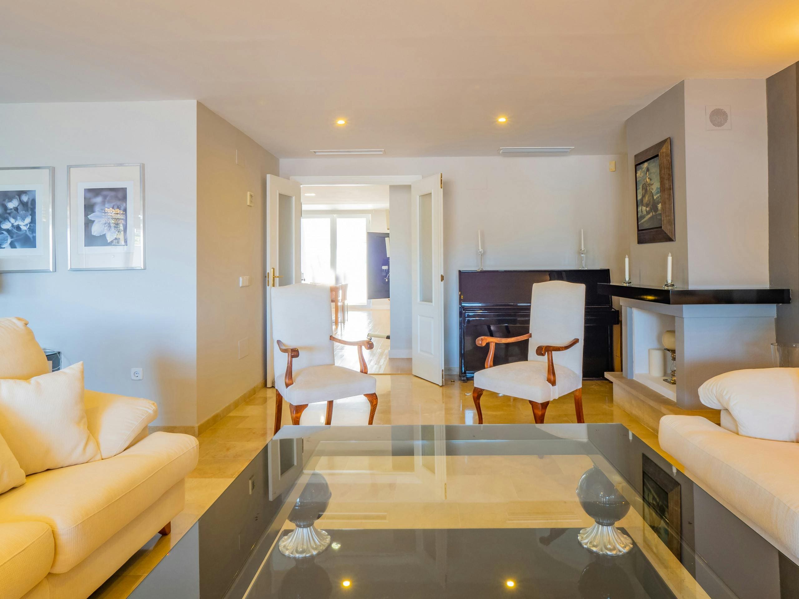 Outside, the villa’s expansive terrace is the perfect spot for soaking up the sun and enjoying al fresco dining with a view. The shared swimming pool offers a refreshing escape from the Spanish heat, though supervision is required for young children as it is not fenced. Surrounded by lush gardens and with the sea just a stone’s throw away, this villa provides a true Mediterranean paradise.