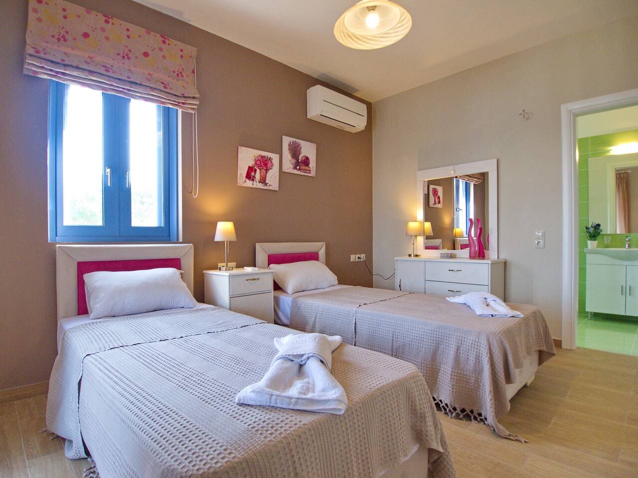 The apartment accommodates up to six guests across three bedrooms and three bathrooms. Air conditioning keeps the space comfortable during the warm summer months. While the Wi-Fi may be patchy in some rooms, the idyllic surroundings more than make up for it. A car is recommended to fully explore the island. Browse our luxury villa rentals in Greece for more properties.