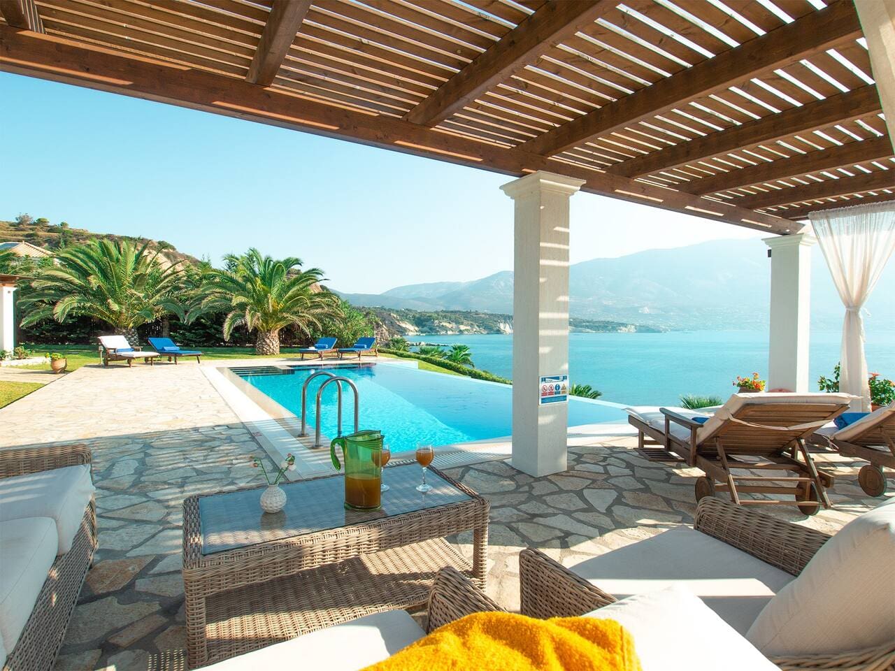 Experience the ultimate in luxury villa rental in Kefallonia at this breathtaking beachfront property in Livathos. With eight bedrooms, this villa is a haven for relaxation and indulgence, offering unparalleled views of the azure Ionian Sea.