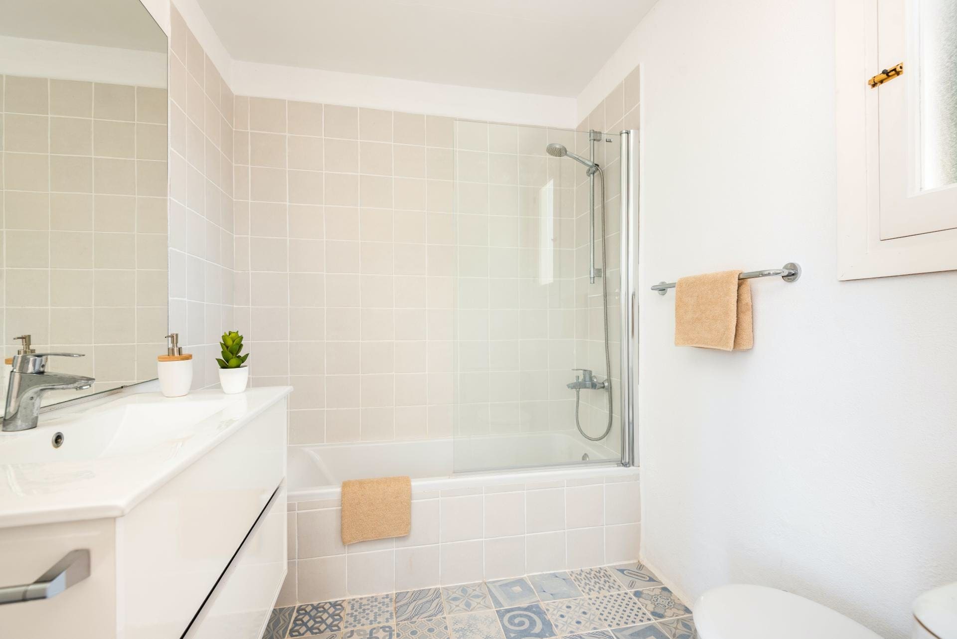 The villa accommodates up to eight guests across four bedrooms and four bathrooms. There is ample free private parking on the premises. While toiletries are not provided, the nearest supermarket is just a short walk away, making it easy to stock up on essentials. To explore the area fully, we recommend hiring a car. Browse our luxury villa rentals in Spain for more properties.