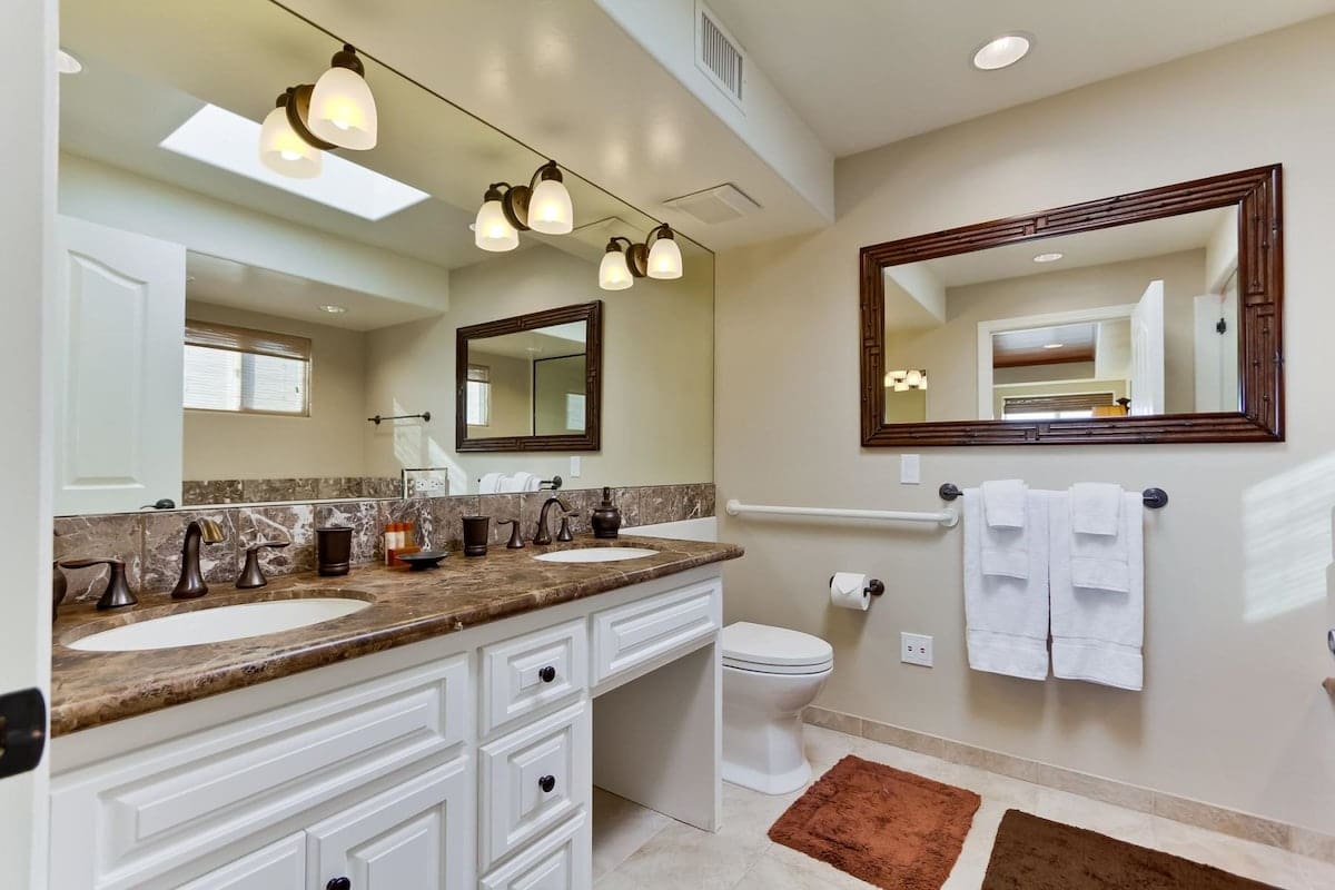 The villa accommodates up to nine guests across four bedrooms and two bathrooms. An enclosed two-car garage offers convenient parking. Note that there are several steps within the property, making it unsuitable for those with mobility challenges. Please browse our luxury villa rentals in United States for more options.