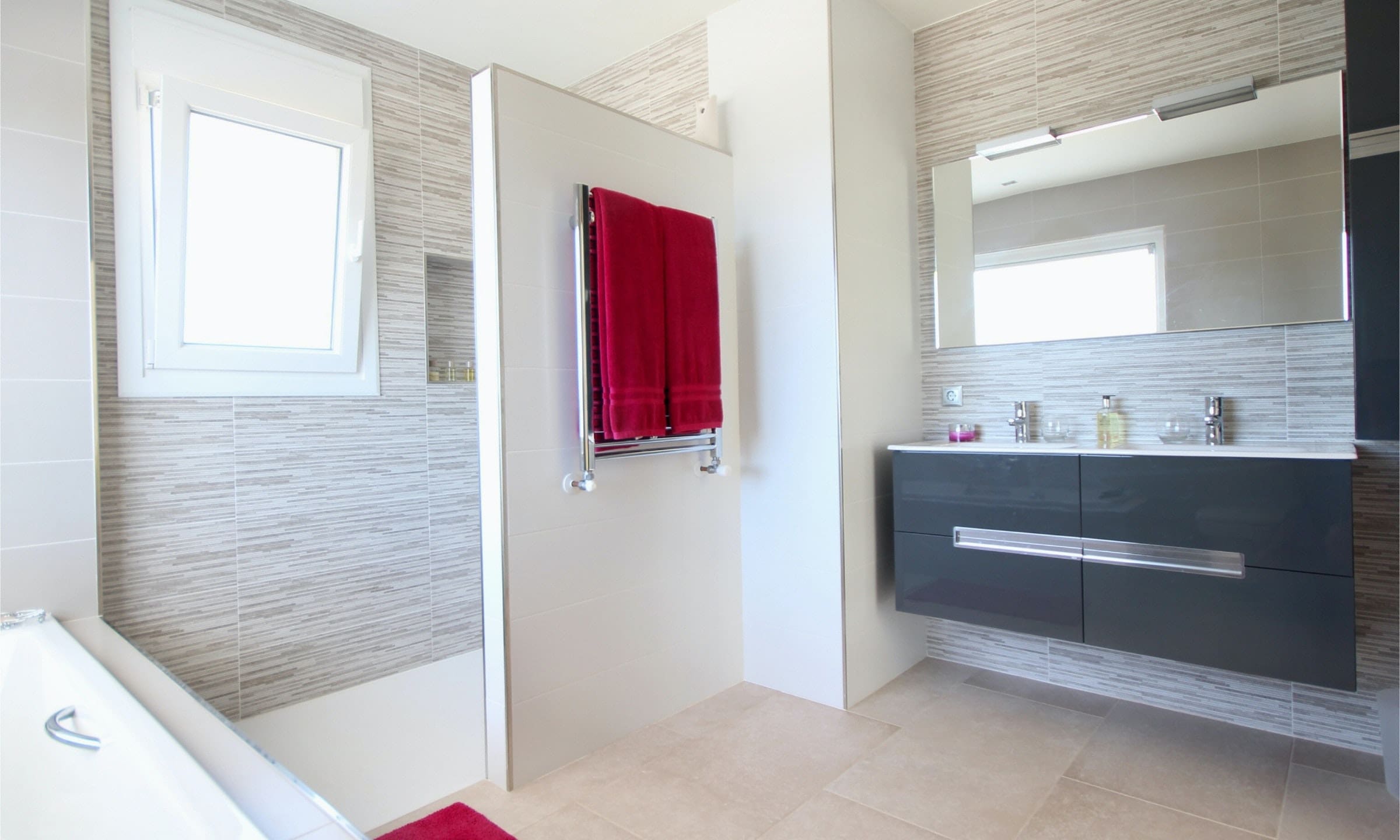 The interiors of this Moraira apartment are designed for comfort and style. The open-concept living room and kitchen are bathed in natural light, creating a welcoming space for socializing and relaxation. Each bedroom is a sanctuary of comfort, with the master suite offering a private terrace with stunning views over Moraira and Calpe. The en-suite bathroom is equipped with a bathtub, ideal for unwinding after a day at the beach.