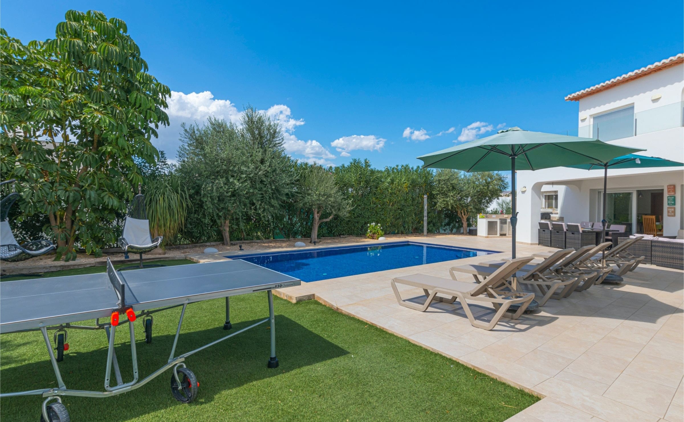 With three bedrooms and three bathrooms, this home comfortably accommodates six guests. The private entrance and parking for up to three cars ensure convenience and security. Note that bed linen is changed every eight days, and the property does not accept groups under 25 years old. Browse our luxury villa rentals in Spain for more properties.