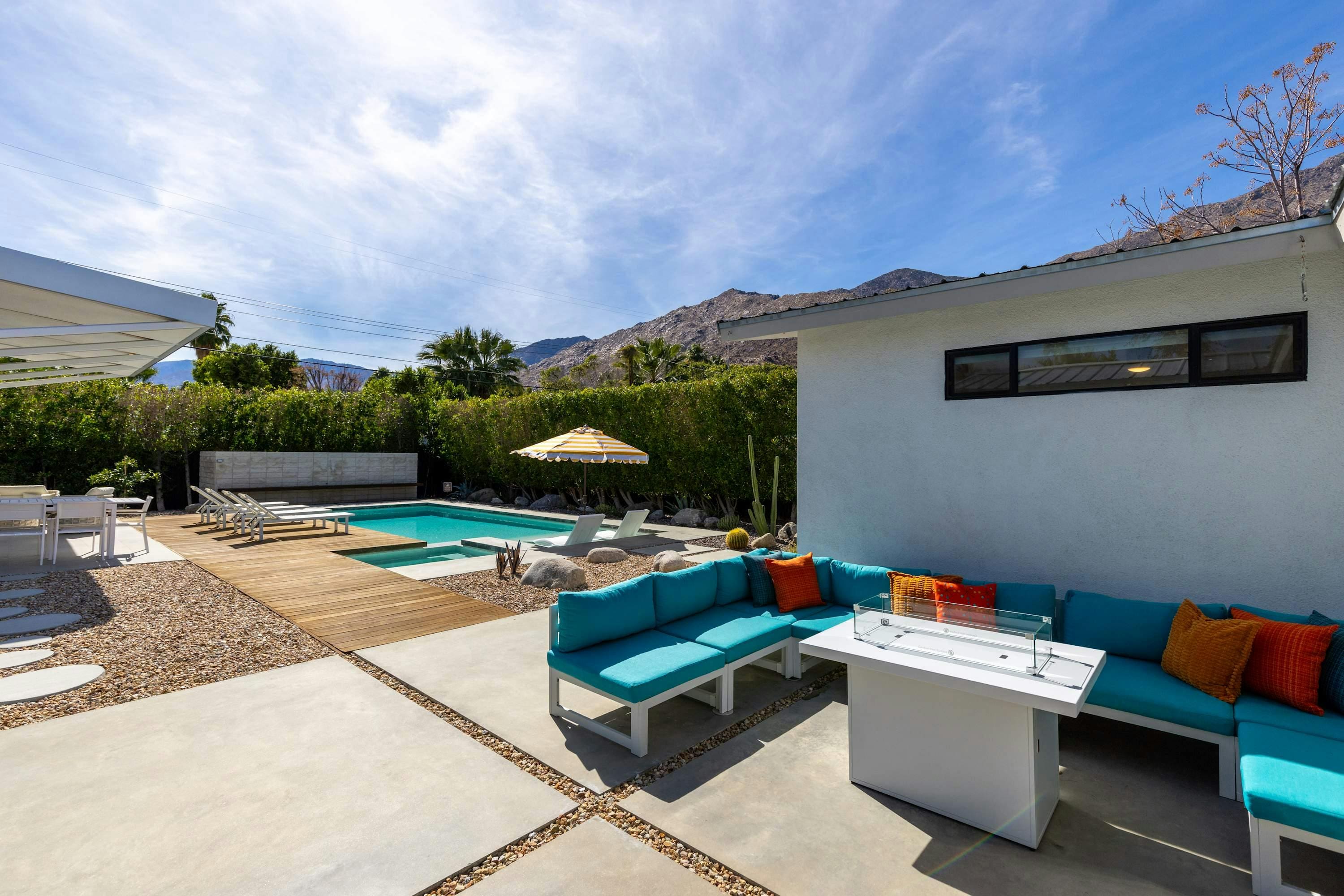 Discover the epitome of relaxation and style with this luxury house rental in Palm Springs. Nestled amidst the iconic desert landscape, this stunning property offers a serene retreat with a sparkling pool and inviting hot tub, perfect for soaking up the California sun.