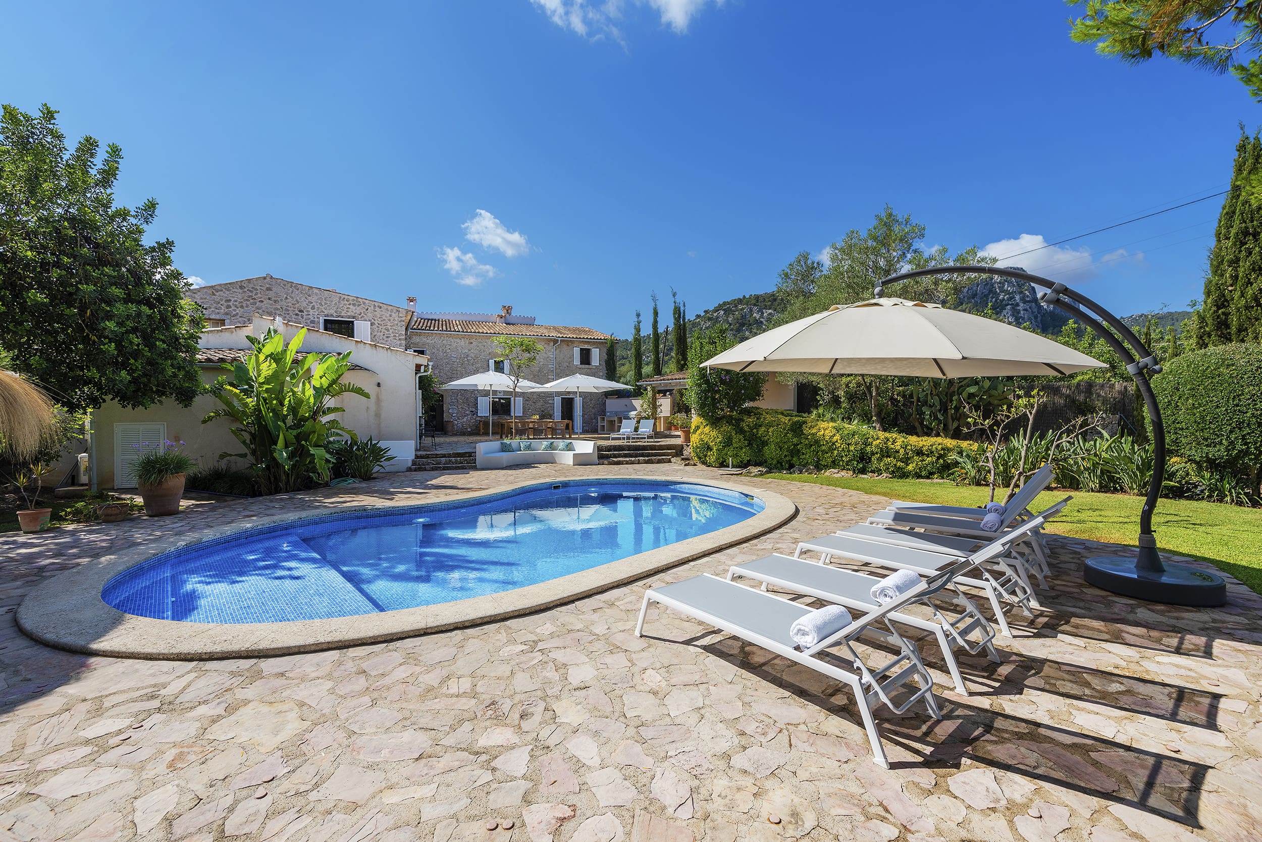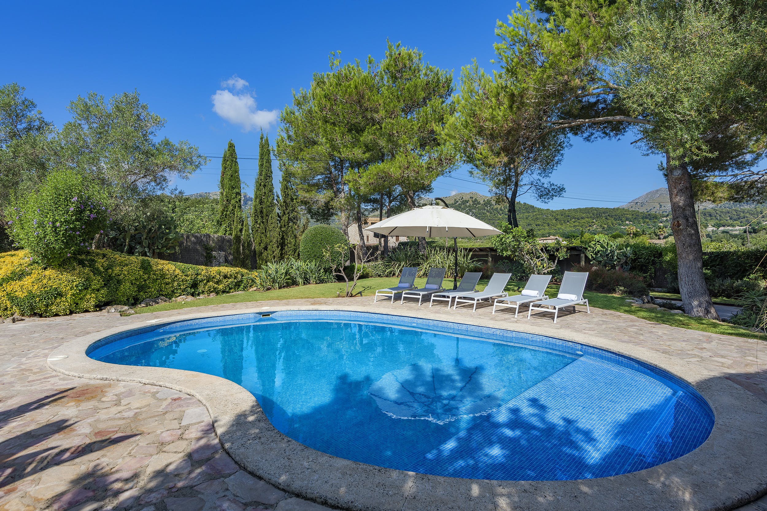 Pollença, with its rich history and vibrant culture, is just a short drive away. Explore the charming streets, visit the local markets, or dine at exquisite restaurants offering authentic Mallorcan cuisine. For adventure seekers, the nearby Tramuntana mountains and the stunning Formentor peninsula offer hiking and breathtaking views. Discover more about our full collection of luxury villa rentals in Pollença. For more on what to see and do, visit the Pollença tourism guide.