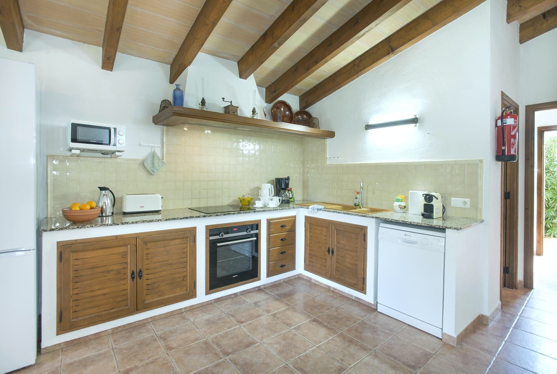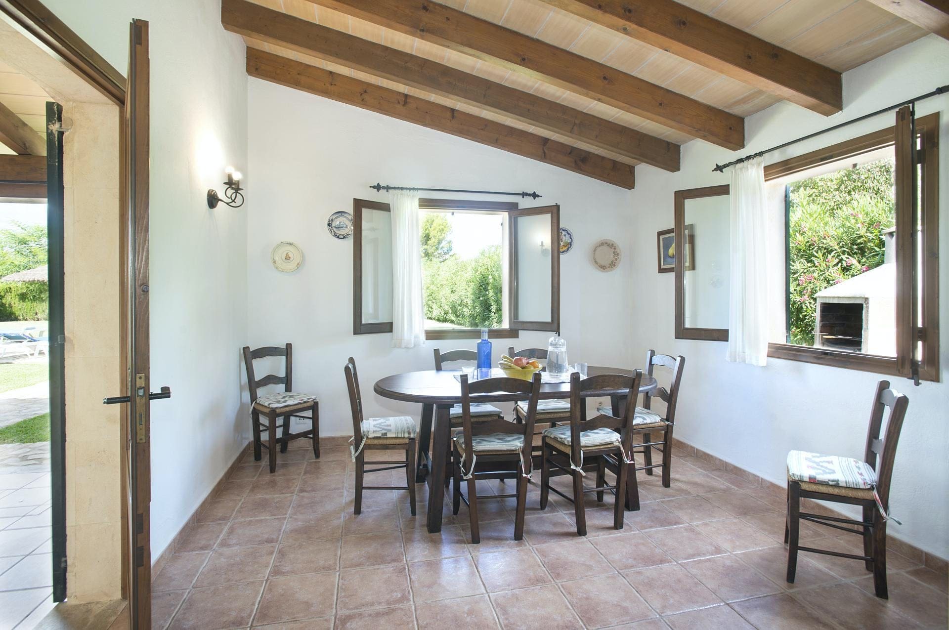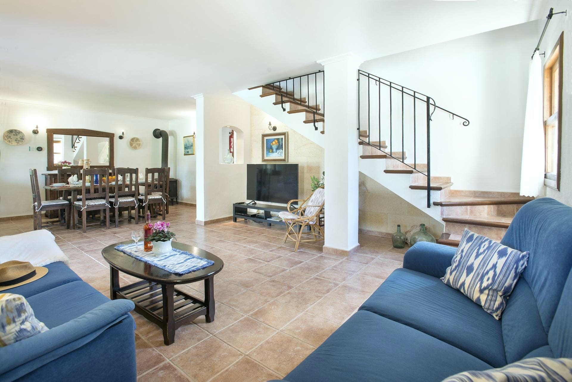 Step inside to find a blend of traditional Mallorcan design with modern amenities. The villa boasts three spacious bedrooms, comfortably accommodating up to six guests. The living area is filled with natural light, creating a warm and inviting space to relax. A fully-equipped kitchen ensures you have everything you need for home-cooked meals, while the dining area provides a cozy setting for family gatherings. The decor may seem a touch vintage, but it adds to the villa’s unique charm.