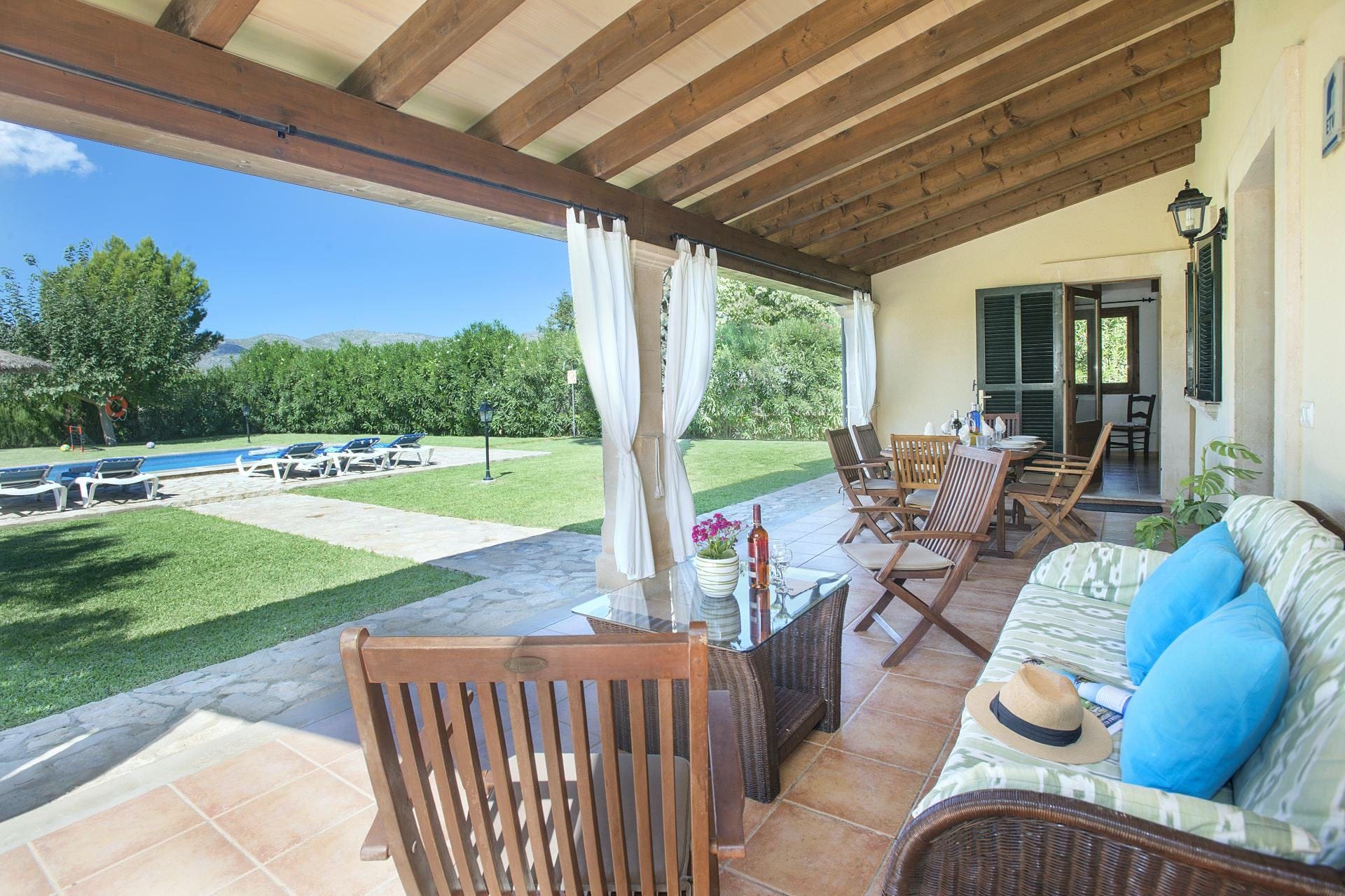 Discover the perfect luxury villa rental in Mallorca at Villa Tramuntana Pollença, where the stunning Sierra Tramuntana mountains provide a breathtaking backdrop. Nestled in the serene town of Pollença, this exquisite four-bedroom house offers a refined escape for up to eight guests, complete with a private swimming pool and family-friendly amenities.