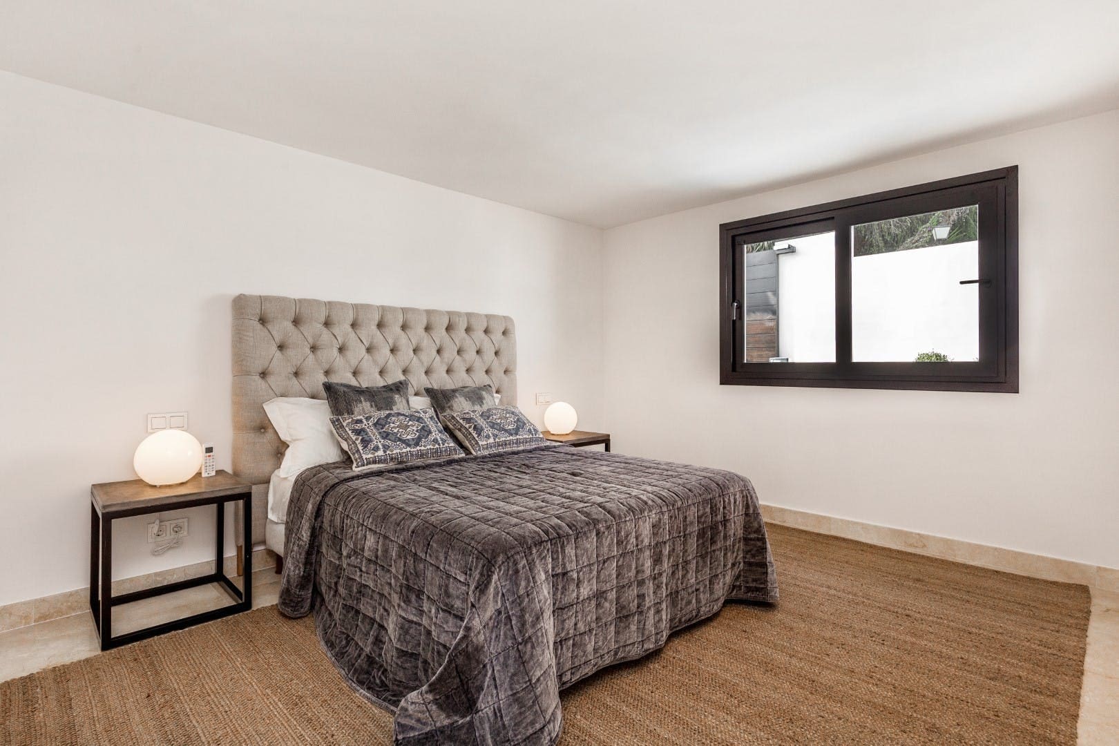 The apartment accommodates up to eight guests with four bedrooms and four bathrooms. Parking is available for two cars, and a ground-floor bedroom ensures accessibility for guests with reduced mobility. Please note that the pool is unfenced, so supervision for children is necessary. Browse our luxury villa rentals in Spain for more properties.